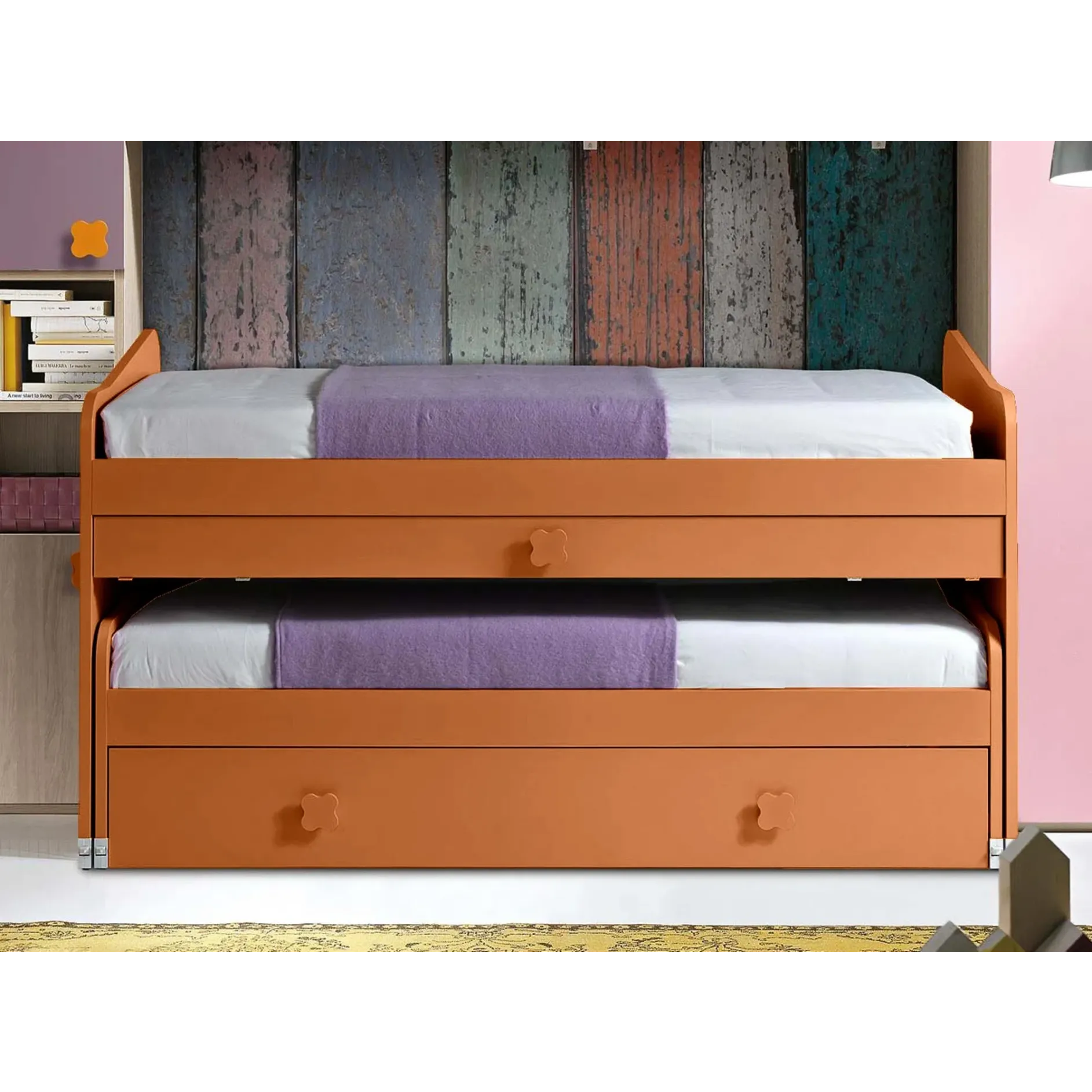 Letto a castello Tango con 3 letti e scrivania estraibile e cassetti in Terracotta
