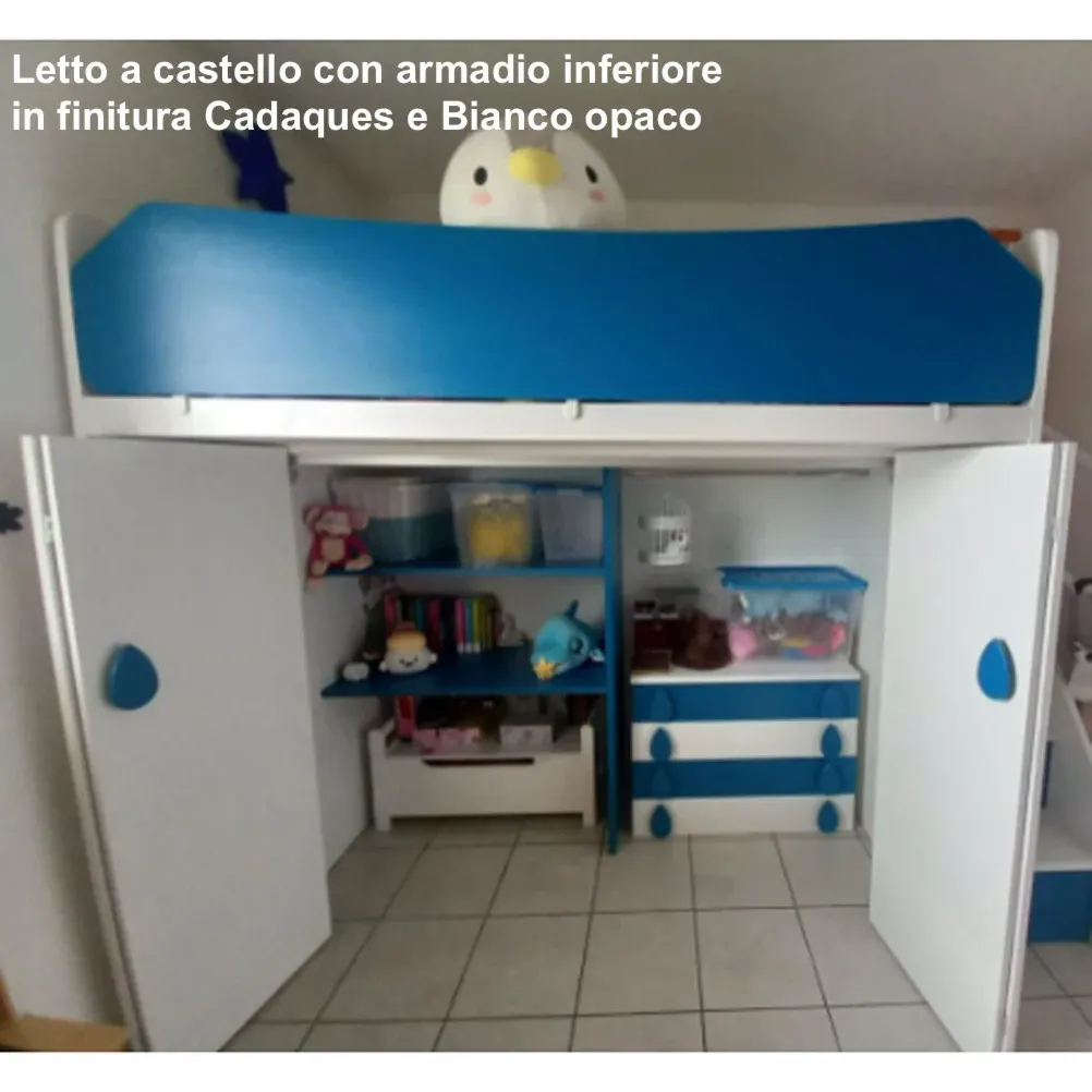 Letto a castello con armadio inferiore in finitura Cadaques e Papaya