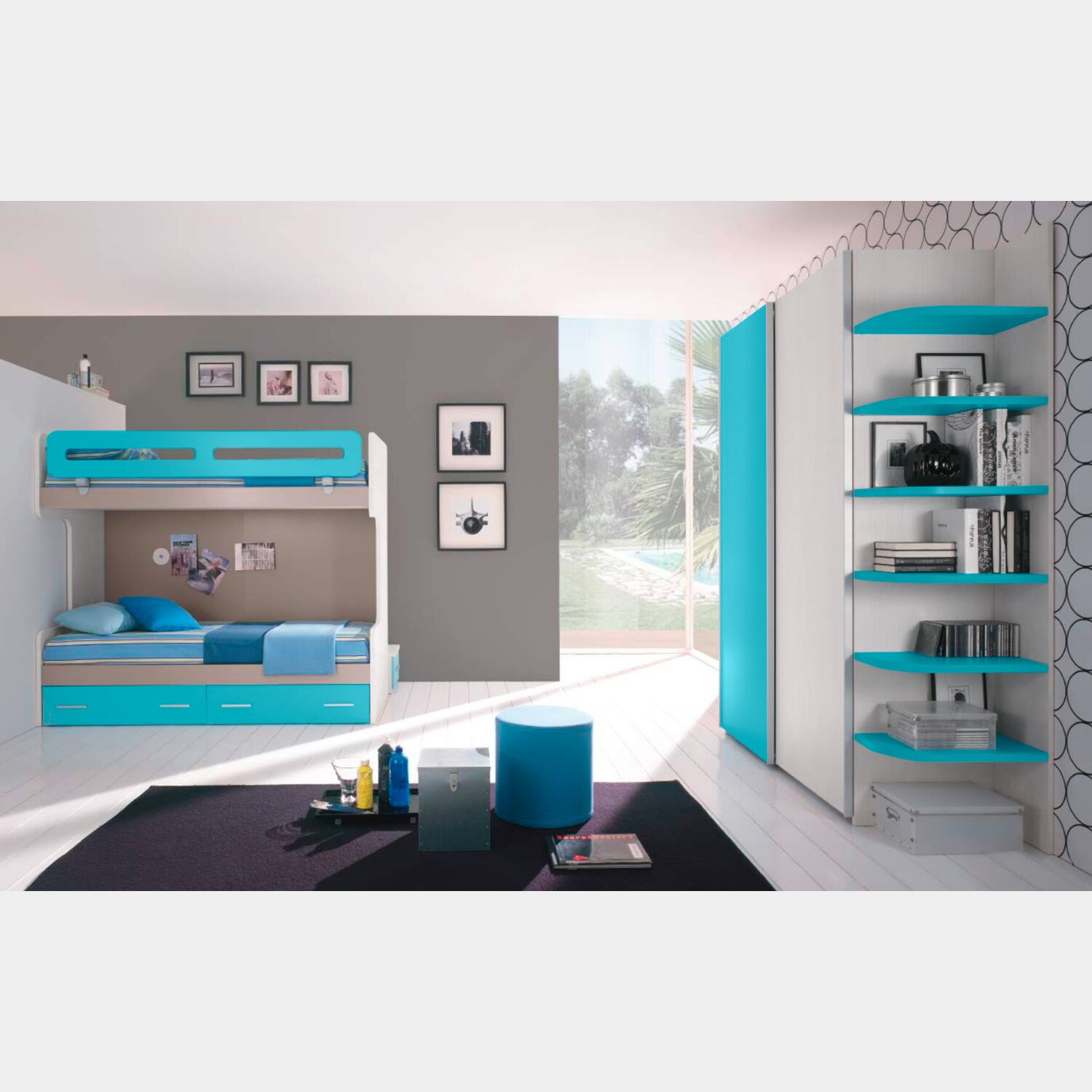 Letto a castello con passerella Riccardo laccato, in finitura Turchese e Tortora