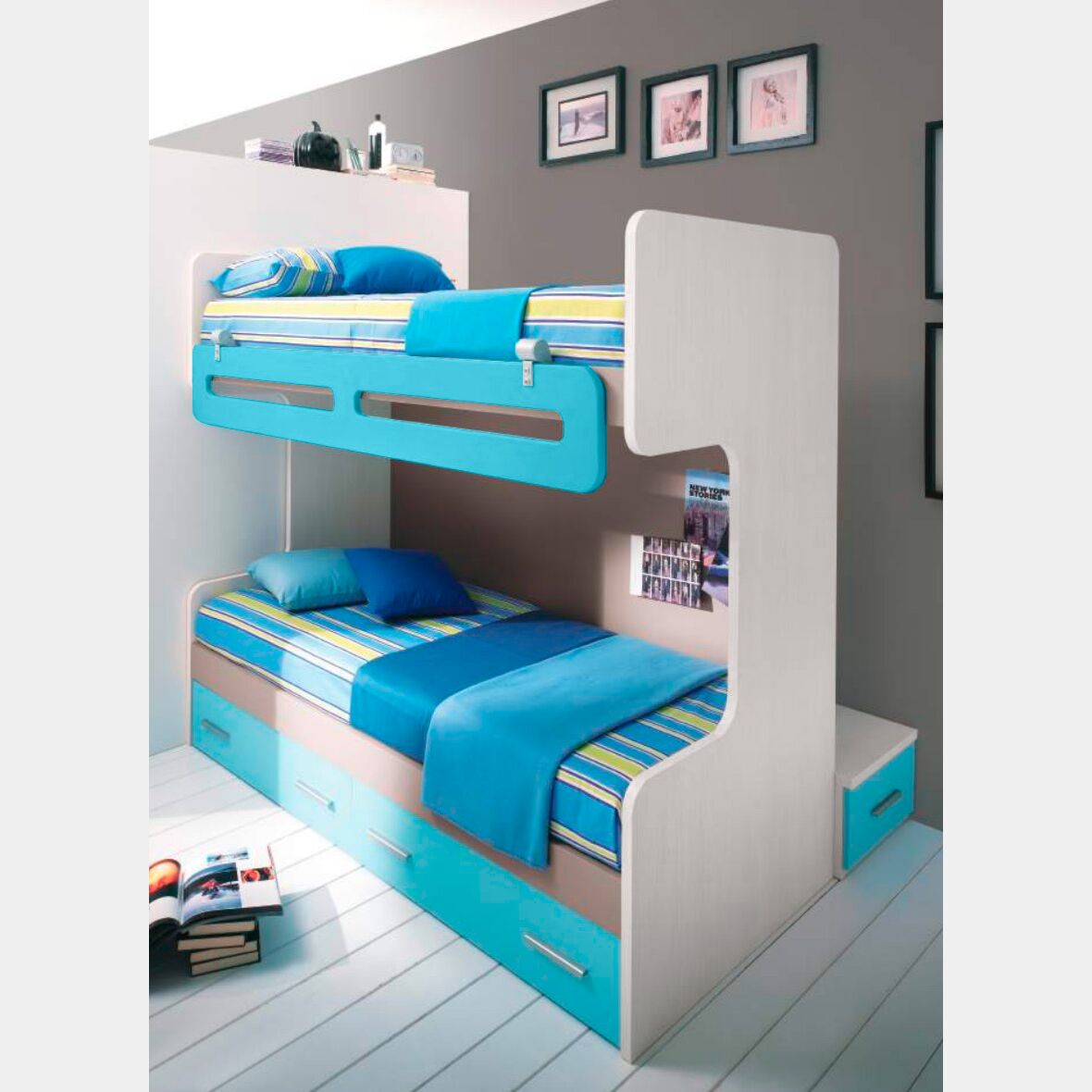 Il letto a castello è dotato di rete a doghe nella parte inferiore e di un pannello nellla parte superiore dove è possibile poggiare il materasso senza rete (sconsigliati per particolari materassi come il lattice o memory foam). I 2 capenti cassetti sono dotati di guide in metallo con portata massima di 20 Kg.