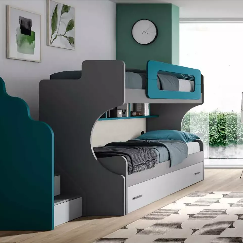 Il letto a castello presenta un design moderno e curato nei minimi dettagli per offrire a tutti i ragazzi un complemento d'arredo unico e confortevole.