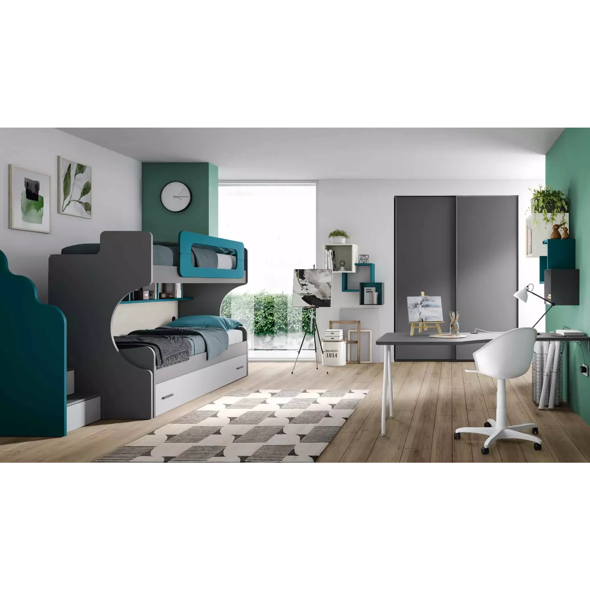 Le tre finiture proposte si mescolano per creare un gioco cromatico che cattura l'attenzione e assicuri al letto a castello il ruolo di protagonista.
