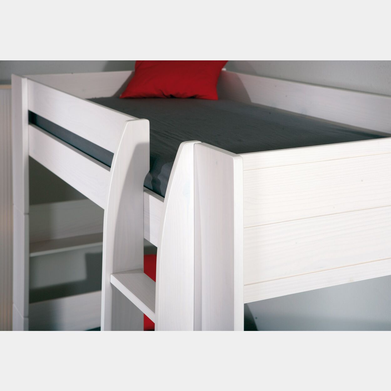 Il letto a castello trasformabile in 2 letti, in legno massello di pino bianco verniciato ad acqua.