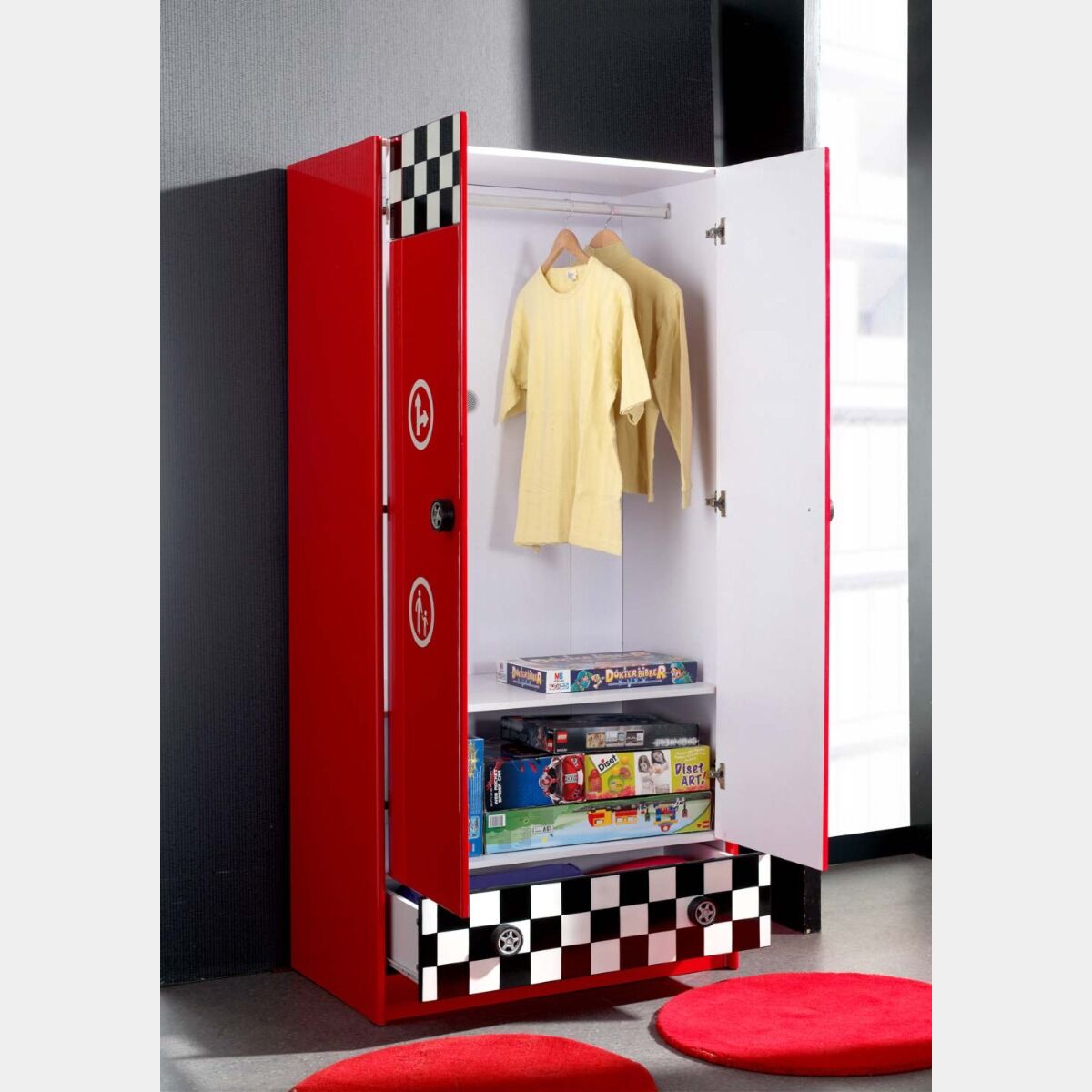 Armadio: è possibile richiedere tramite configuratore l'armadio a due ante con cassetto inferiore, che riprende le colorazione e il design del letto a castello. L'allestimento prevede un ripiano ed un tubo appendiabiti, le ante sono dotate di soft-close. Dimensioni: L.90 H.190 P.56,8 cm
