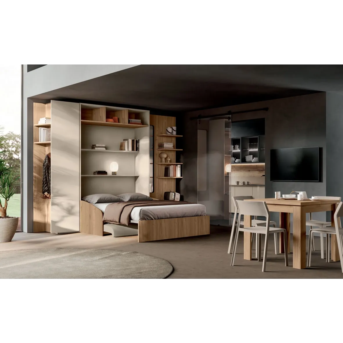 Letto a scomparsa con divano, finitura Noce biondo e Orzo