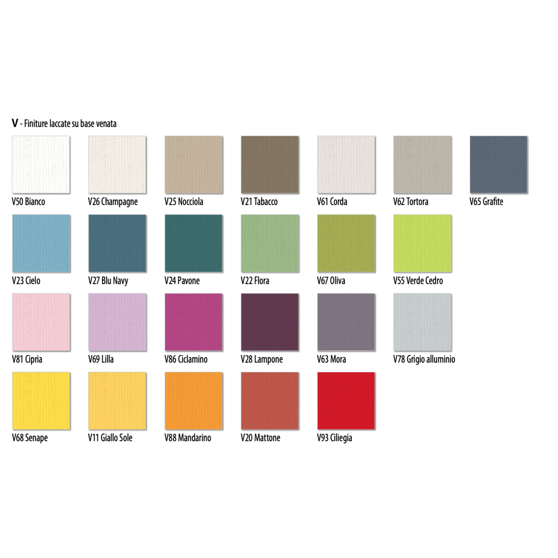 Le finiture proposte sono Quarzo, Nocciola venato e Verde cedro per il frontale del divano letto. Grazie ad un'ampia gamma di tonalità è possibile personalizzarlo al meglio per adattarlo ai propri gusti.