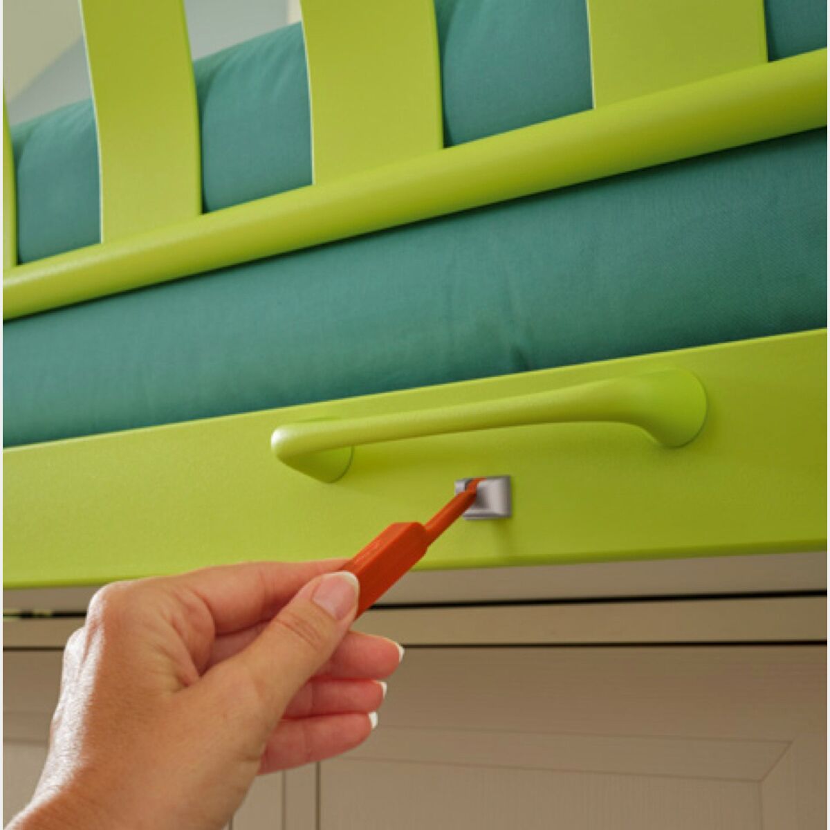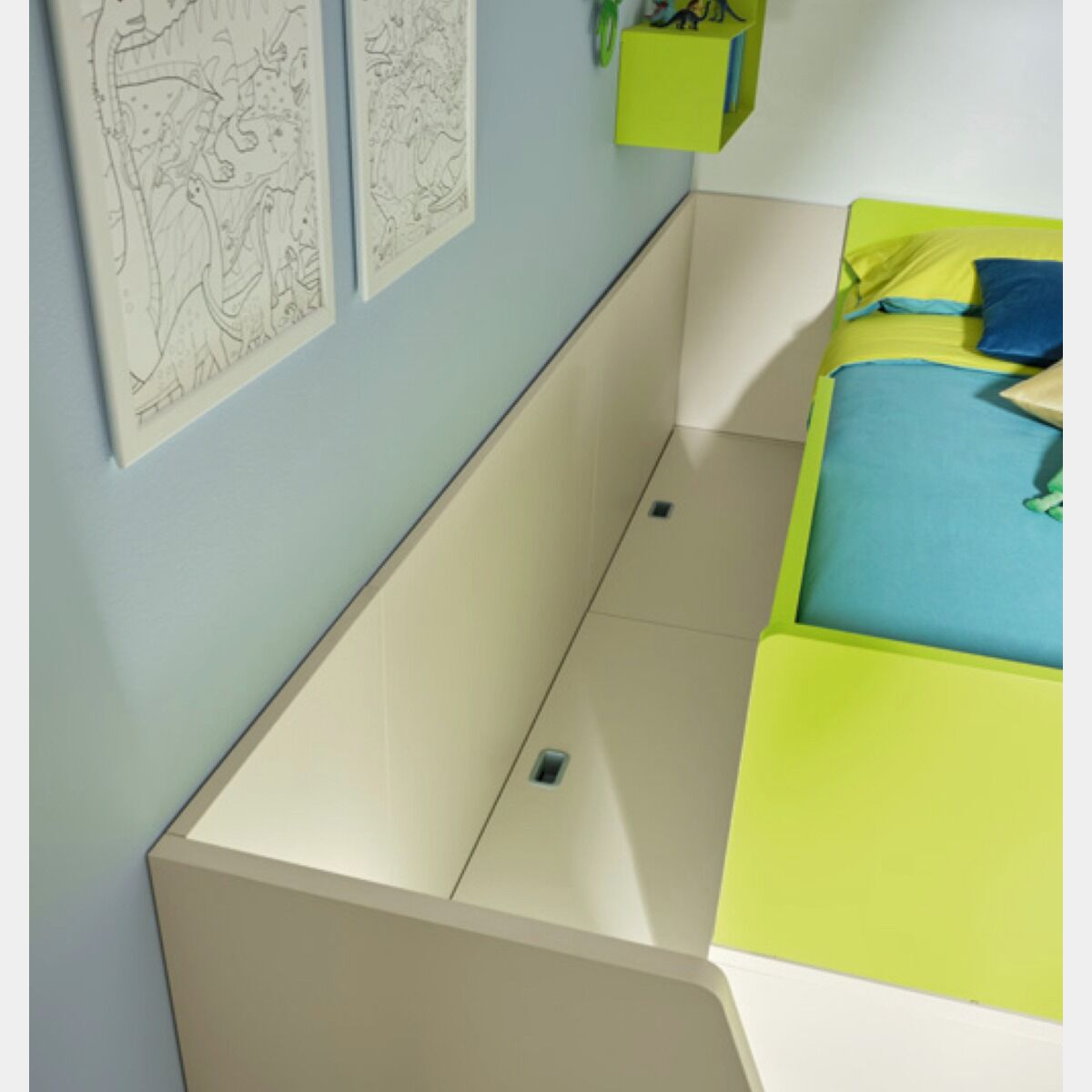 Il letto a soppalco è dotato di un pianale scorrevole del letto che consente lo spostamento per recuperare spazio nella stanza. Di giorno il letto è accostato alla parete e copre la scaletta, la sera il pianale viene fatto avanzare a centro stanza per consentire l'accesso alla scala e al letto. E' provvisto di una chiavetta di sicurezza affinché lo spostamento del letto sia un'operazione riservata a soli adulti mentre i bambini spetta soltanto la libertà di giocare senza farsi male.