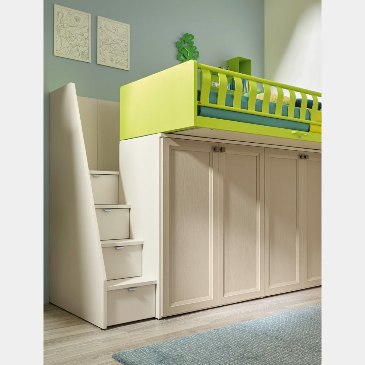 Letto a soppalco con passerella e armadio, Moretti Compact KC512