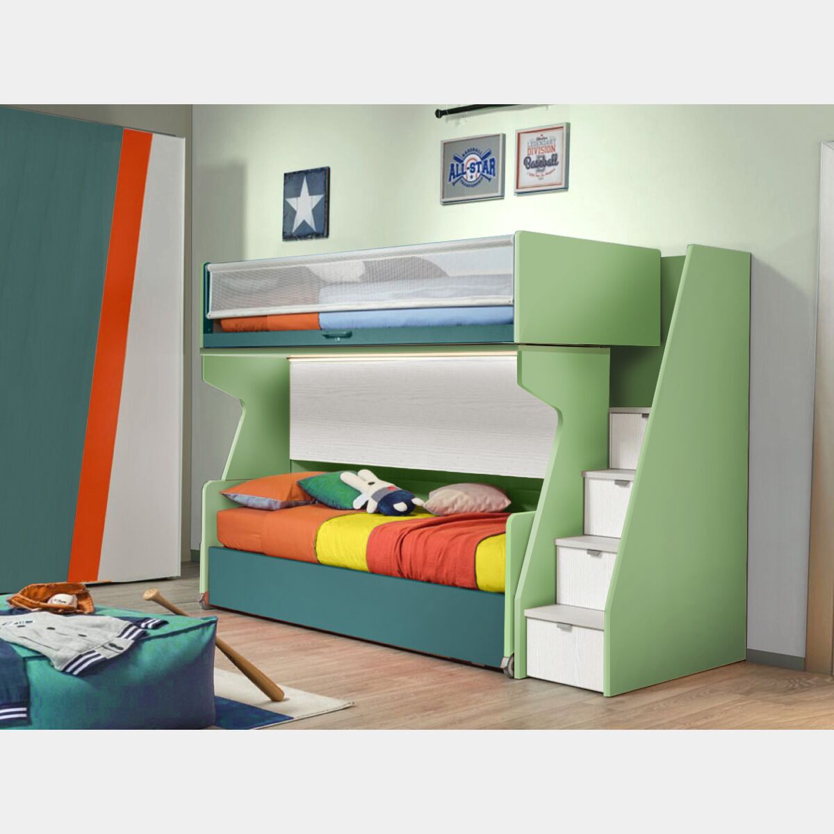 Letto a soppalco con passerella a 3 posti letto Moretti Compact, Flora e Pavone