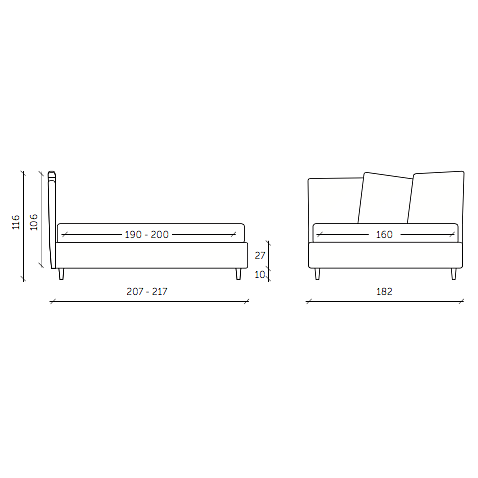 Rete contenitore optional dalle misure di 160x190. Questo letto è provvisto di piedini con un'altezza di 10 cm, ciò ti consentirà di pulire nella zona sottostante senza problemi.