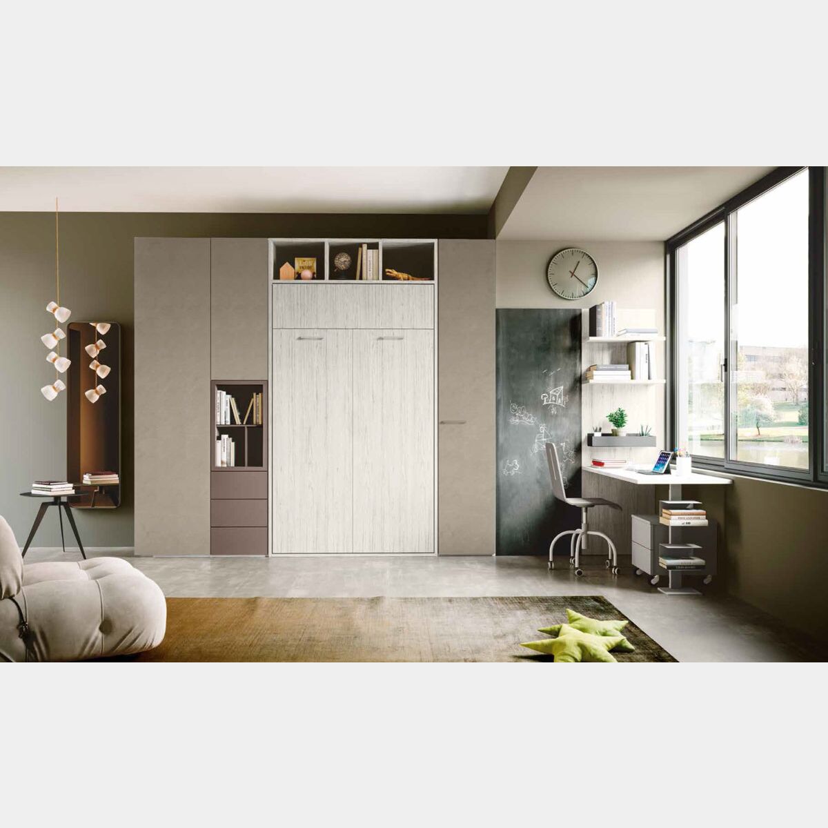 Il Letto - armadio a scomparsa prende sempre più piede nella camerette dalle dimensioni medio-piccole, questo perchè in qualche metro si ha una soluzione estremamente comoda e funzionale, poco ingombrante. Il letto- armadio a scomparsa è infatti pensato per coniugare comfort durante le ore di riposo ad un estetica moderne e innovativa che ti consenta di arredare con eleganza la camera.