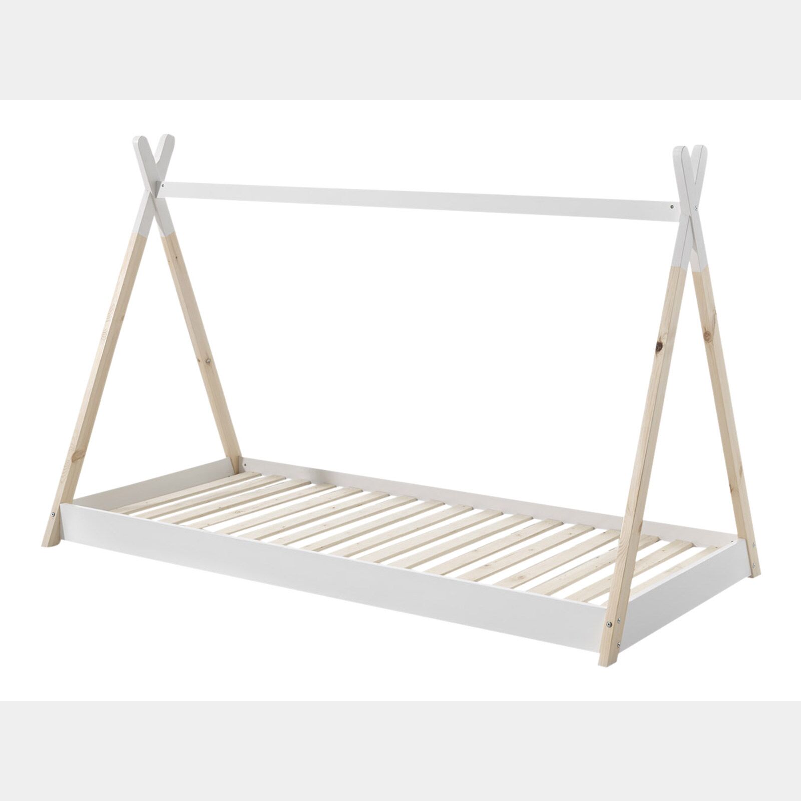 Letto bambini montessoriano 90x200, Pino naturale e Bianco laccato