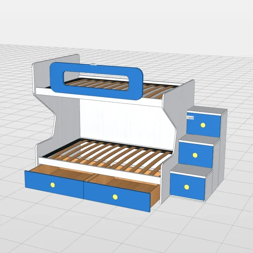 I colori proposti sono moderni ed eleganti: il color Cielo e il Nuvola frassino lo rendono allegro e luminoso, e quelle maniglie gialle rotonde danno un tocco di colore pop che piace un sacco. Personalizza il letto a castello con i colori disponibili a campionario e arreda con gusto la tua cameretta!