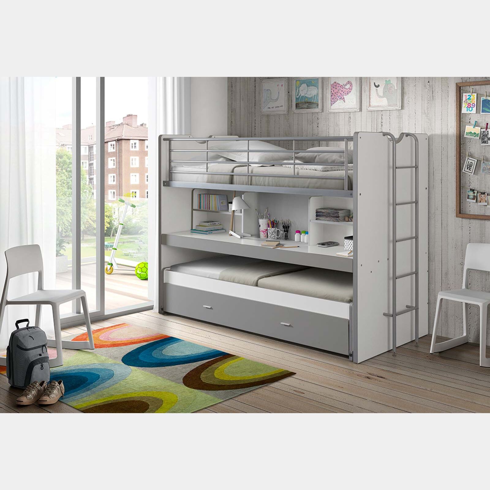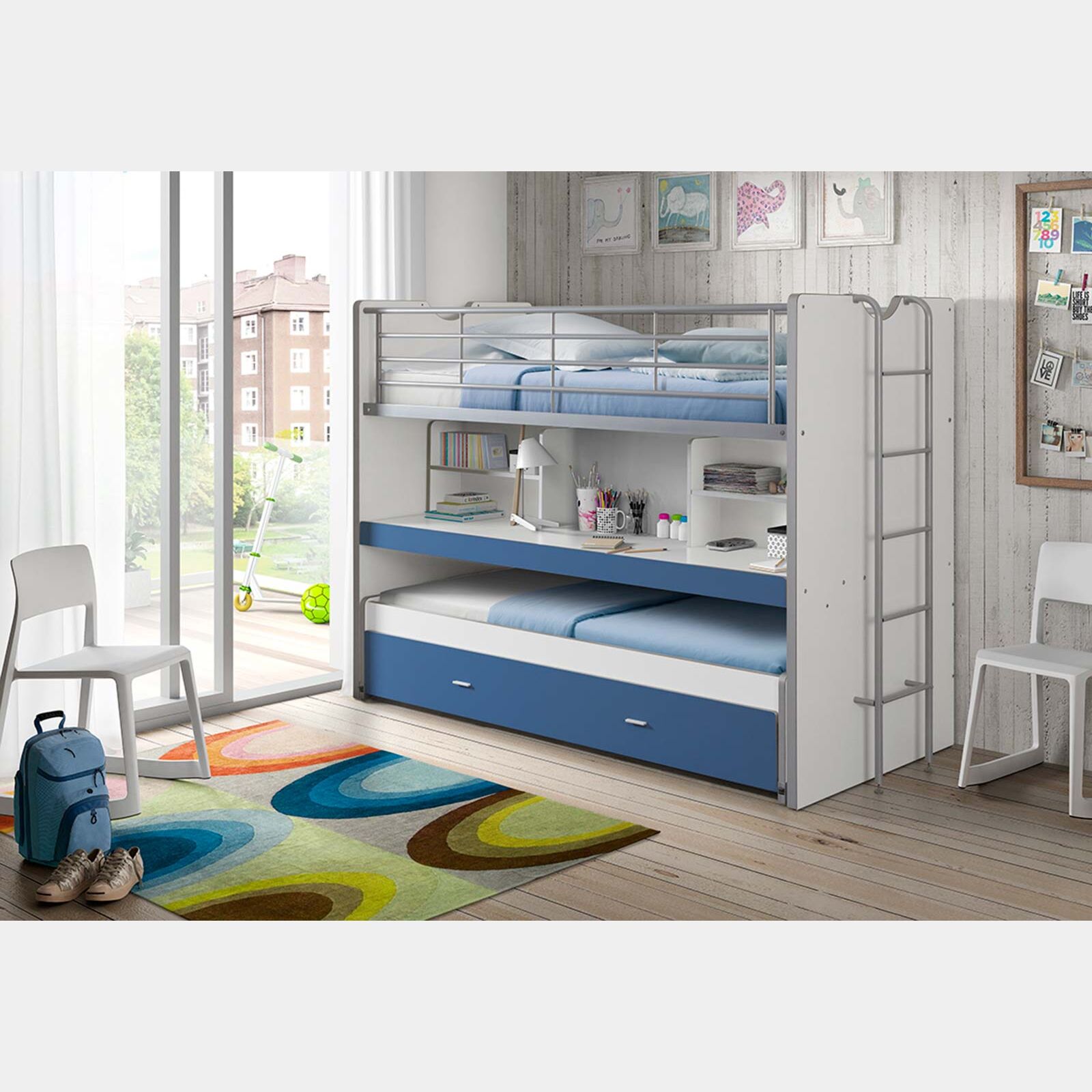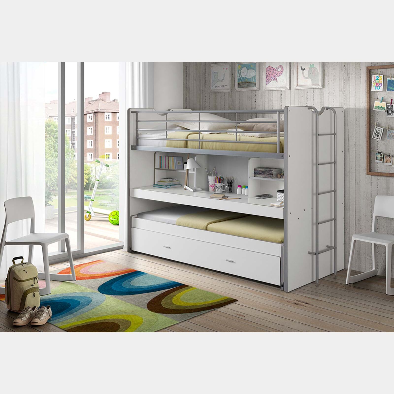 Letto castello con scrivania, 3 posti, disponibile in 7 colori