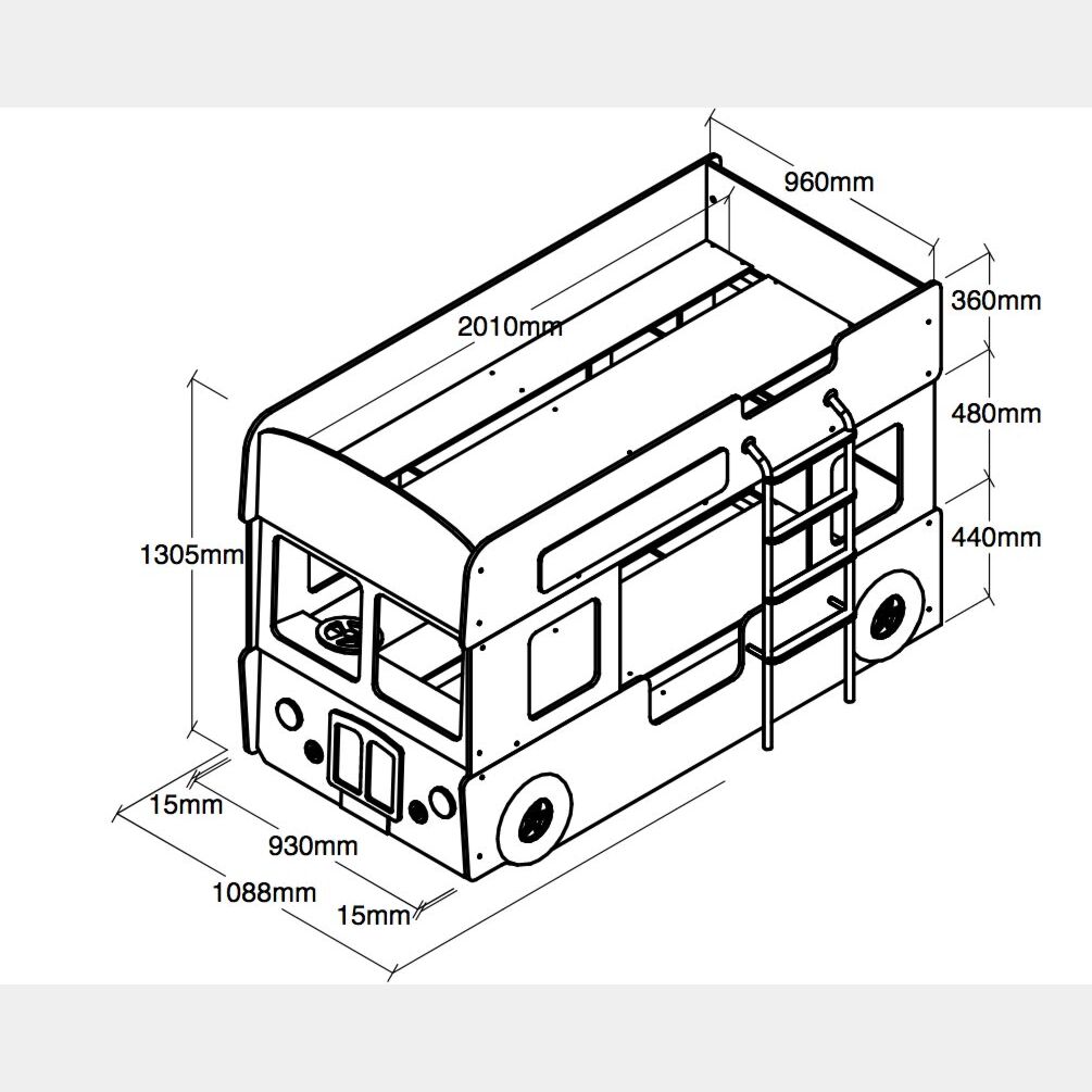 Un design unico ed estremamente accattivante caratterizza il letto, assicurando un complemento d'arredo che piacerà a tutti i bambini. Il letto a castello riprende il bus londinese in tutti i suoi dettagli, dall'estetica alle finiture: rifinito con colori caratteristici e valorizzato con numerosi inserti, come ad esempio il volante e la luce led, diventa il letto sognato da tutti i bambini.