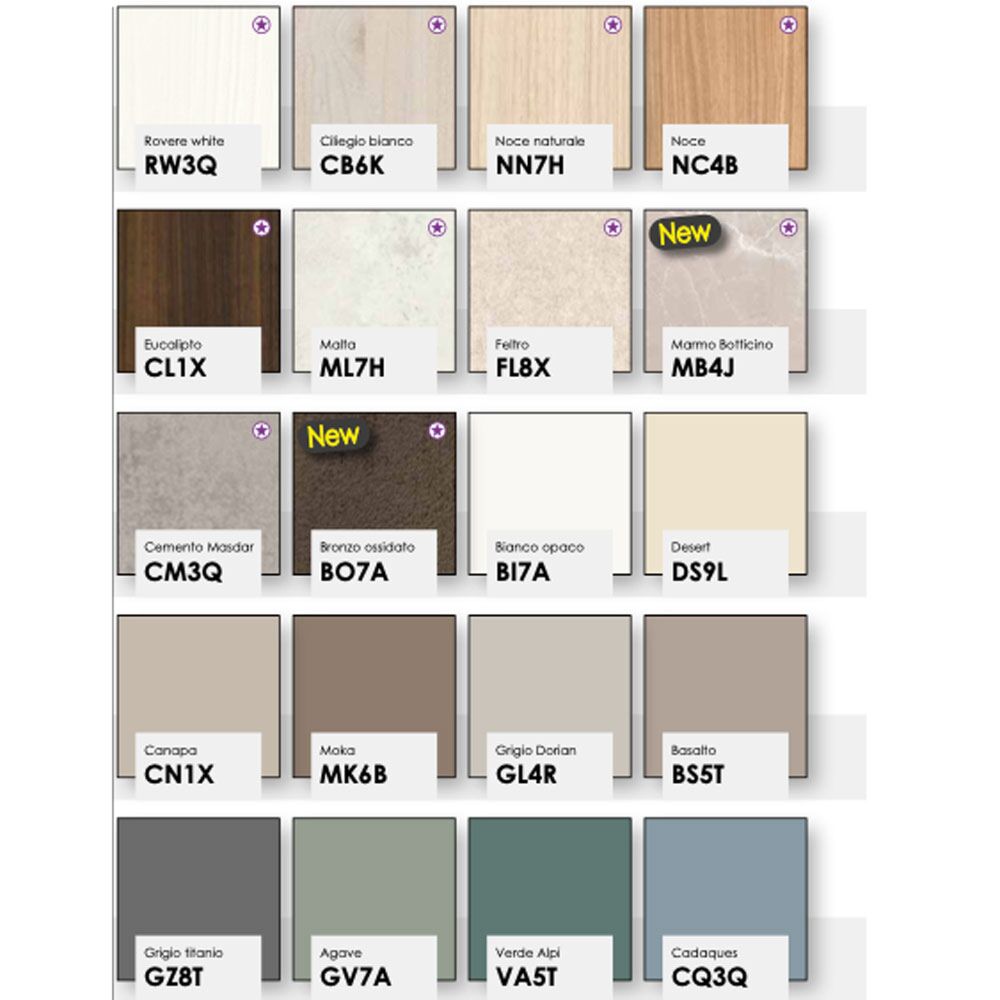 Le finiture proposte sono Desert per i pannelli, Giallo zafferano per letti e scaletta e Bianco opaco per protezioni. Il delicato accostamento di queste tonalità assicura un letto a castello personale ed accattivante; grazie ad un'ampia gamma di finiture è possibile creare accostamenti o contrasti unici!