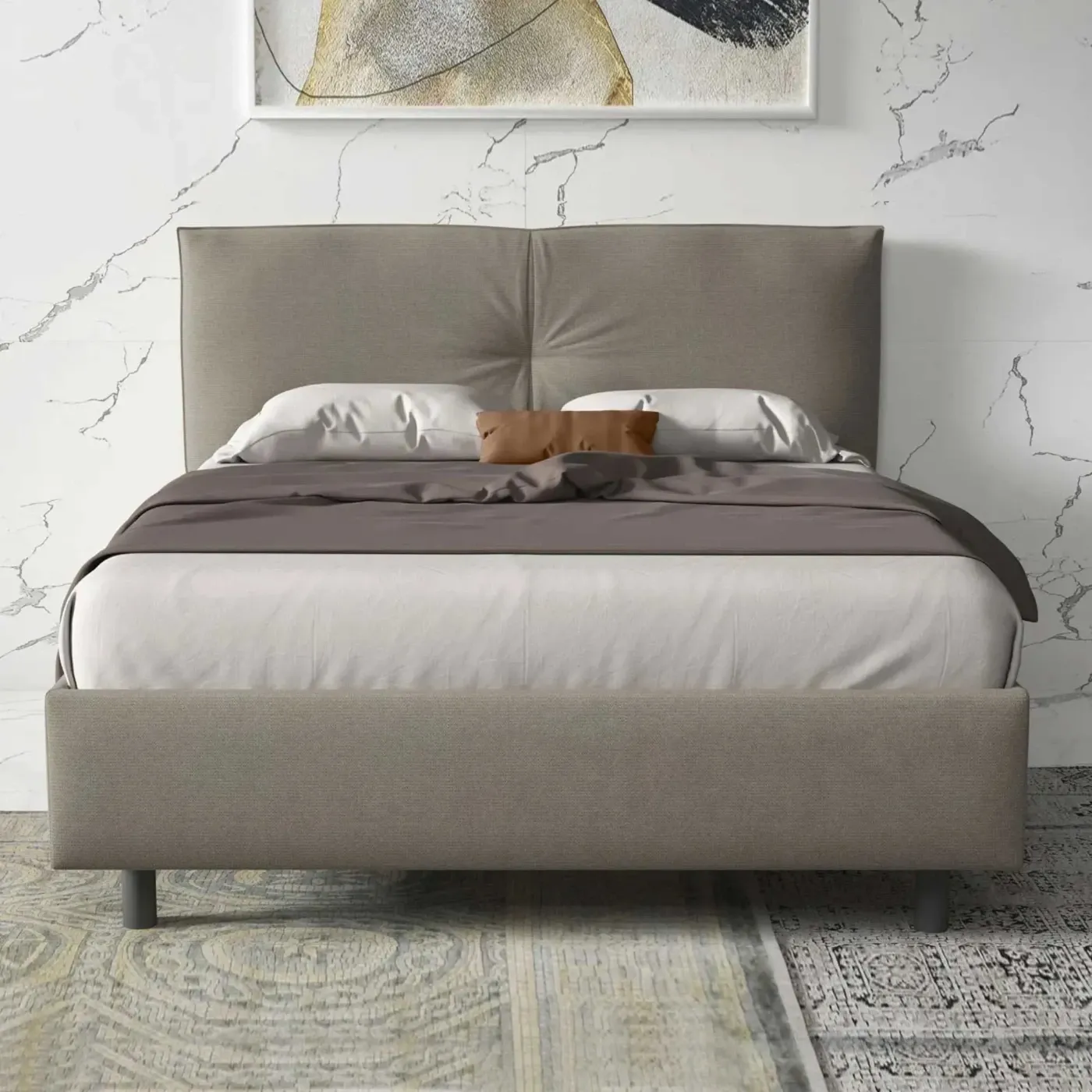Letto matrimoniale in finitura Tortora molto capiente .E’ disponibile anche in versione Ghiaccio, Fumo, Ecopelle Bianco, Tortora, Azzurro, Verde Salvia.