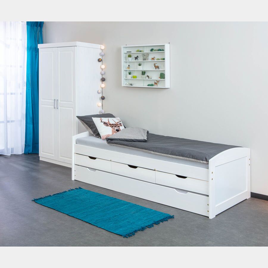 LETTO CON CASSETTI CONTENITORE E SECONDO LETTO INFERIORE AD ESTRAZIONE.
