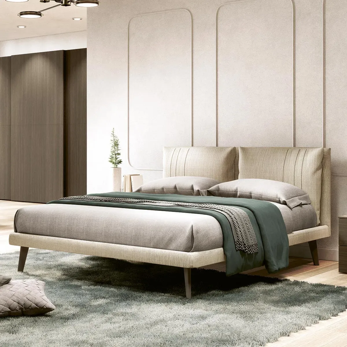 Letto con cuscini in testata matrimoniale, tessuto Carol