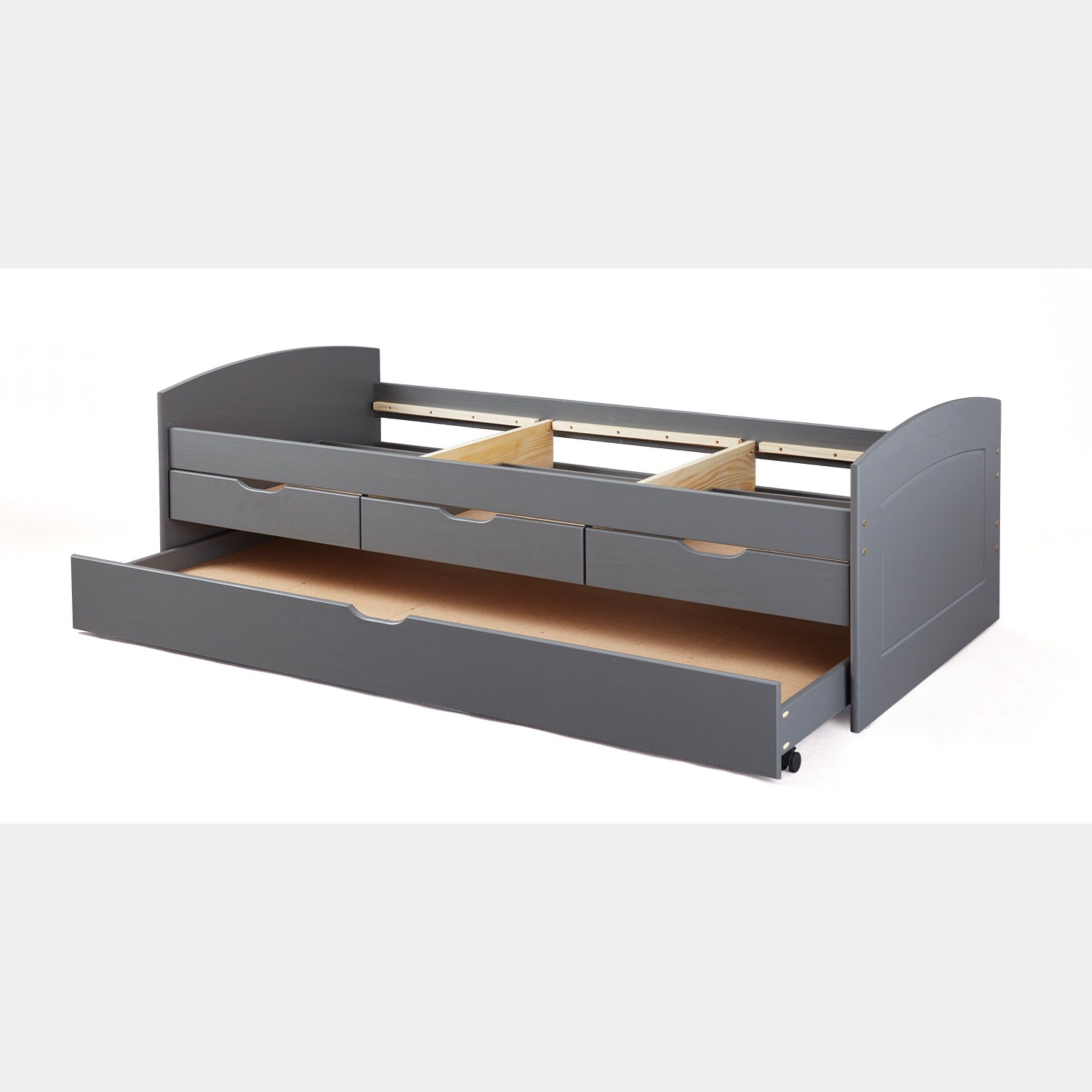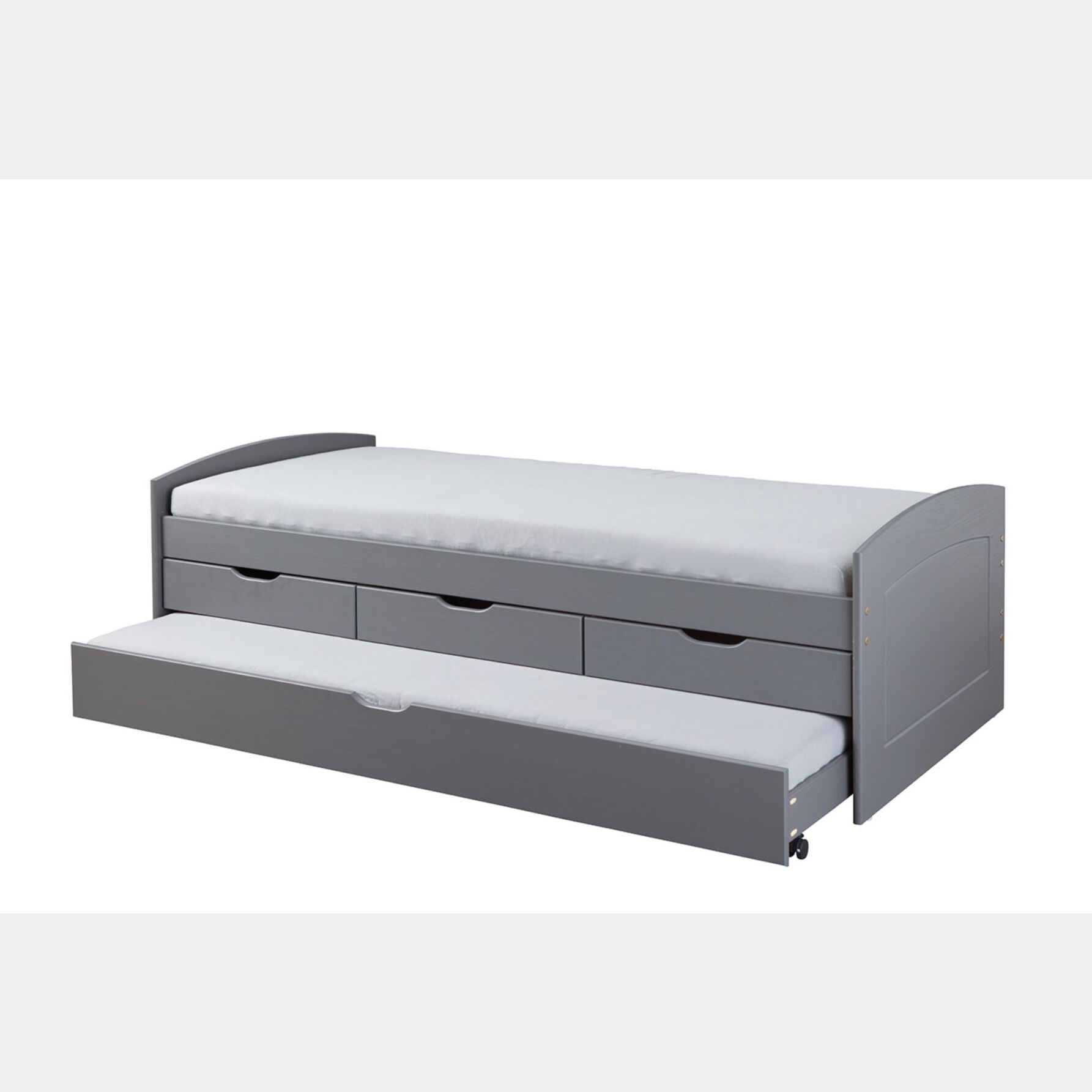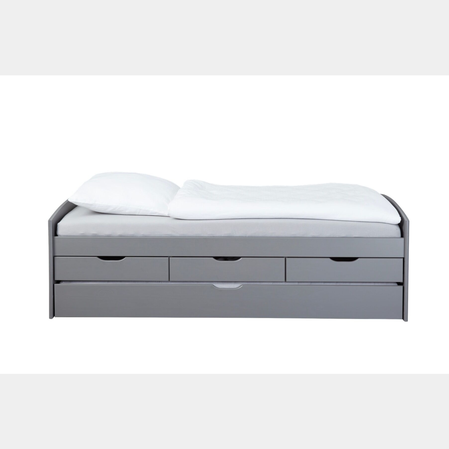 Letto con secondo letto estraibile con ruote e 3 cassetti, colore grigio