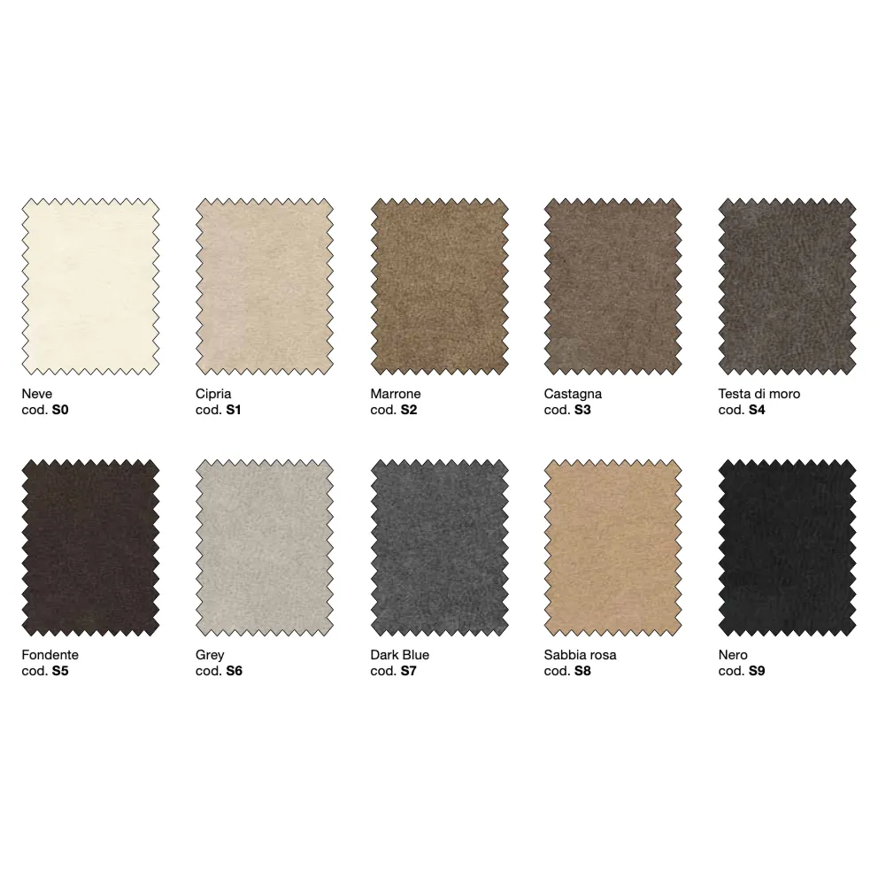 • Testata: in pannelli di agglomerato di legno, certificati E1. Testiera non sfoderabile, rivestita nella parte posteriore. Spessore 10 cm. Rivestita con tessuto antimacchia, 50% poliestere, 40% poliuretano, 10% poliestere.