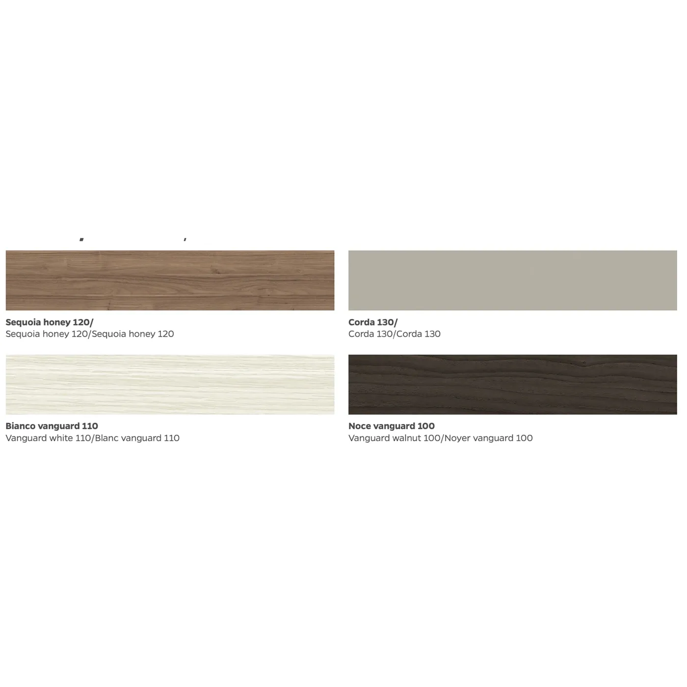 Un aspetto tecnico fondamentale è la realizzazione di fascioni, pediera e fondo con pannelli di particelle di legno nobilitato con carta melaminica, il tutto rigorosamente a emissione di formaldeide in classe E1.