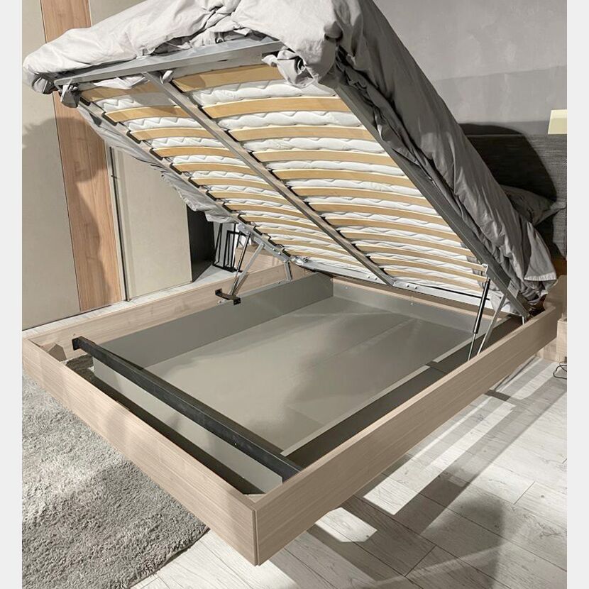 Letto contenitore matrimoniale Ester, finitura Bianco altea e Orzo con testata tessuto Beige