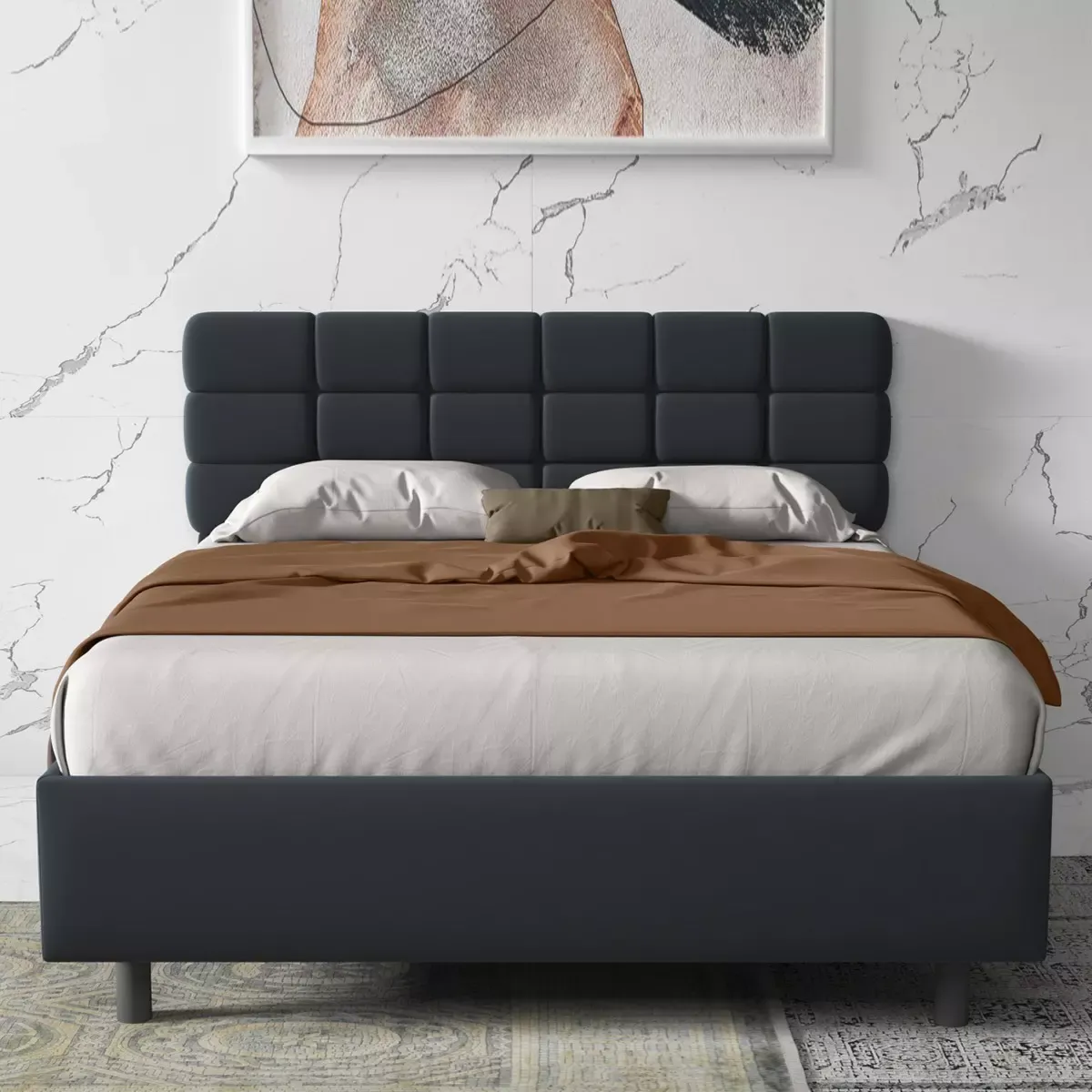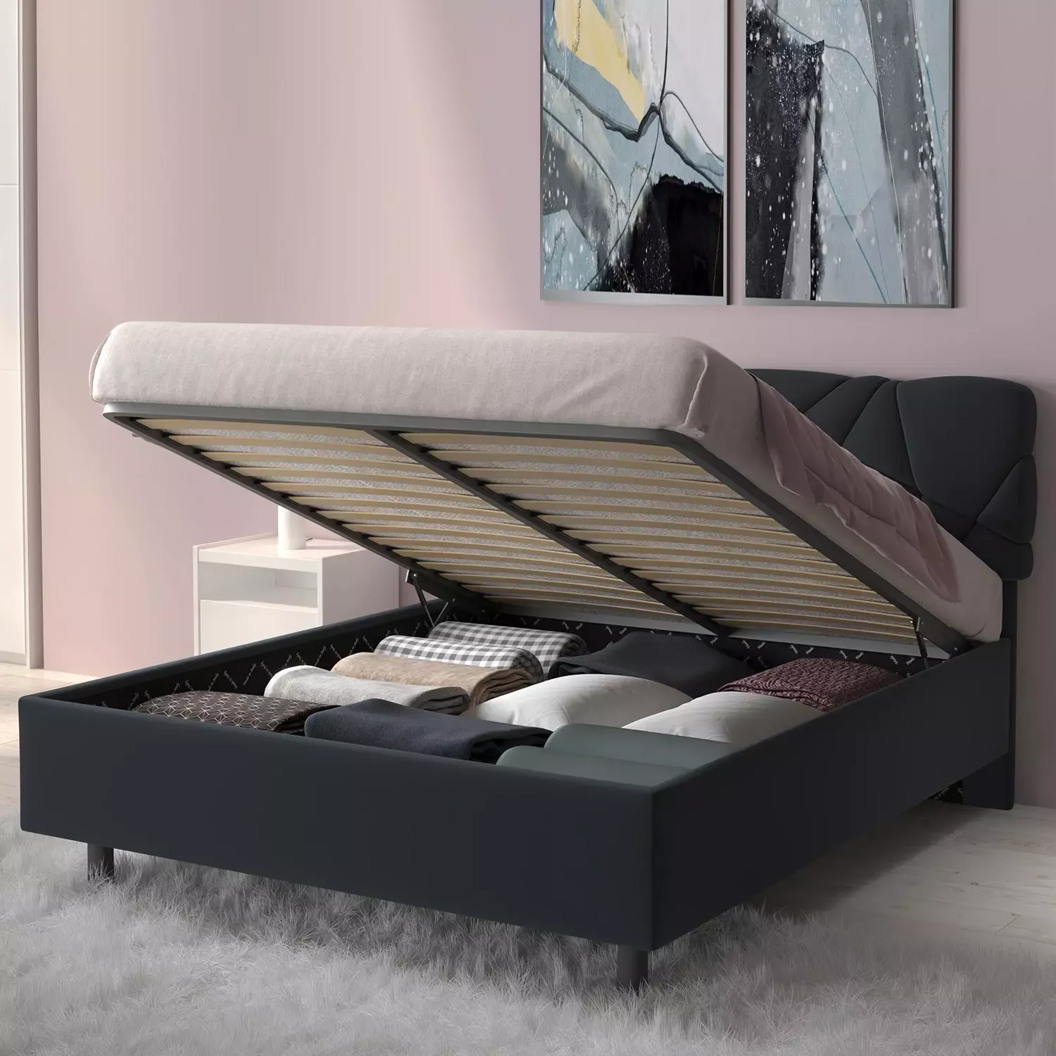 Letto contenitore matrimoniale Grigio antracite, imbottito