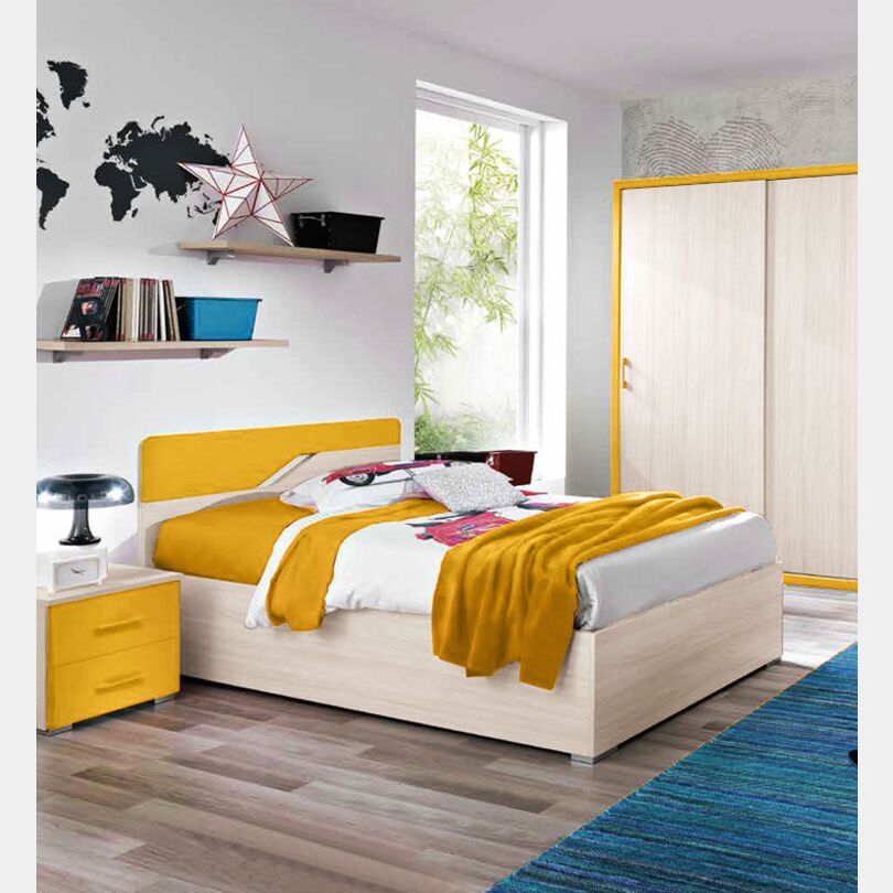 Letto contenitore una piazza e mezza Federica, finitura Olmo e Giallo