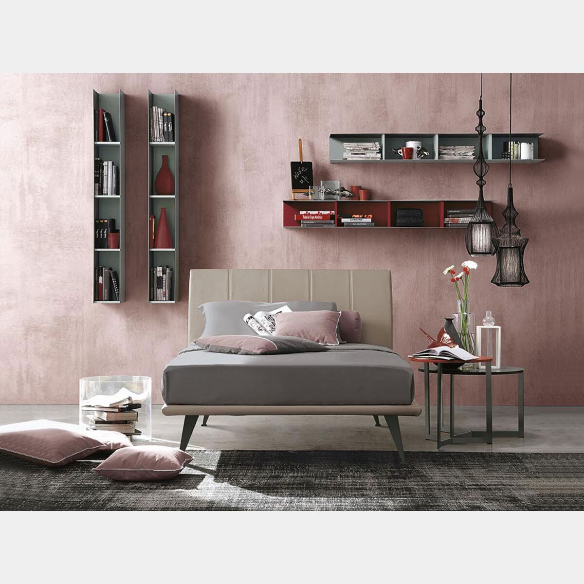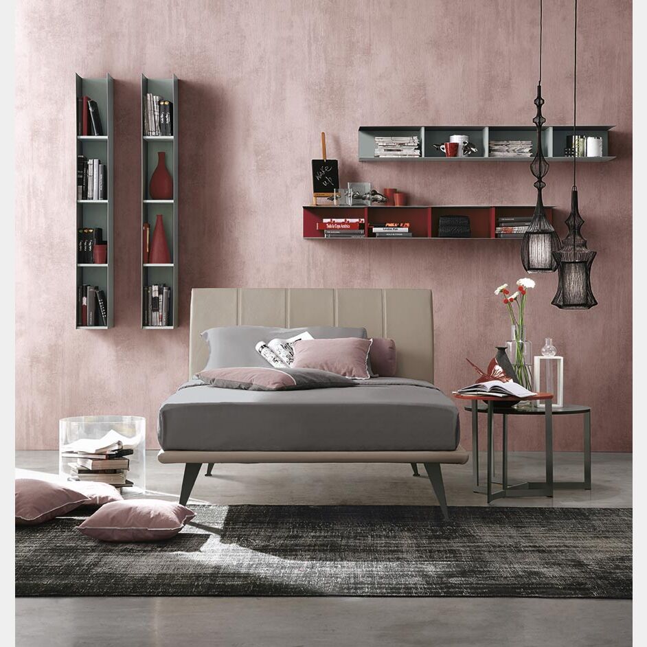 Design e neutre finiture si fondono per dare vita ad un letto moderno ed elegante, capace di accontentare sia grandi che piccoli. Il letto ad una piazza e mezza viene proposto in una delicata finitura Tortora, valorizzata da alti piedini antracite. Dettaglio accattivante che cattura l'attenzione è la lavorazione della testata: caratterizzata da quattro sottili bande verticali il letto ad una piazza e mezza diventerà protagonista della zona notte.