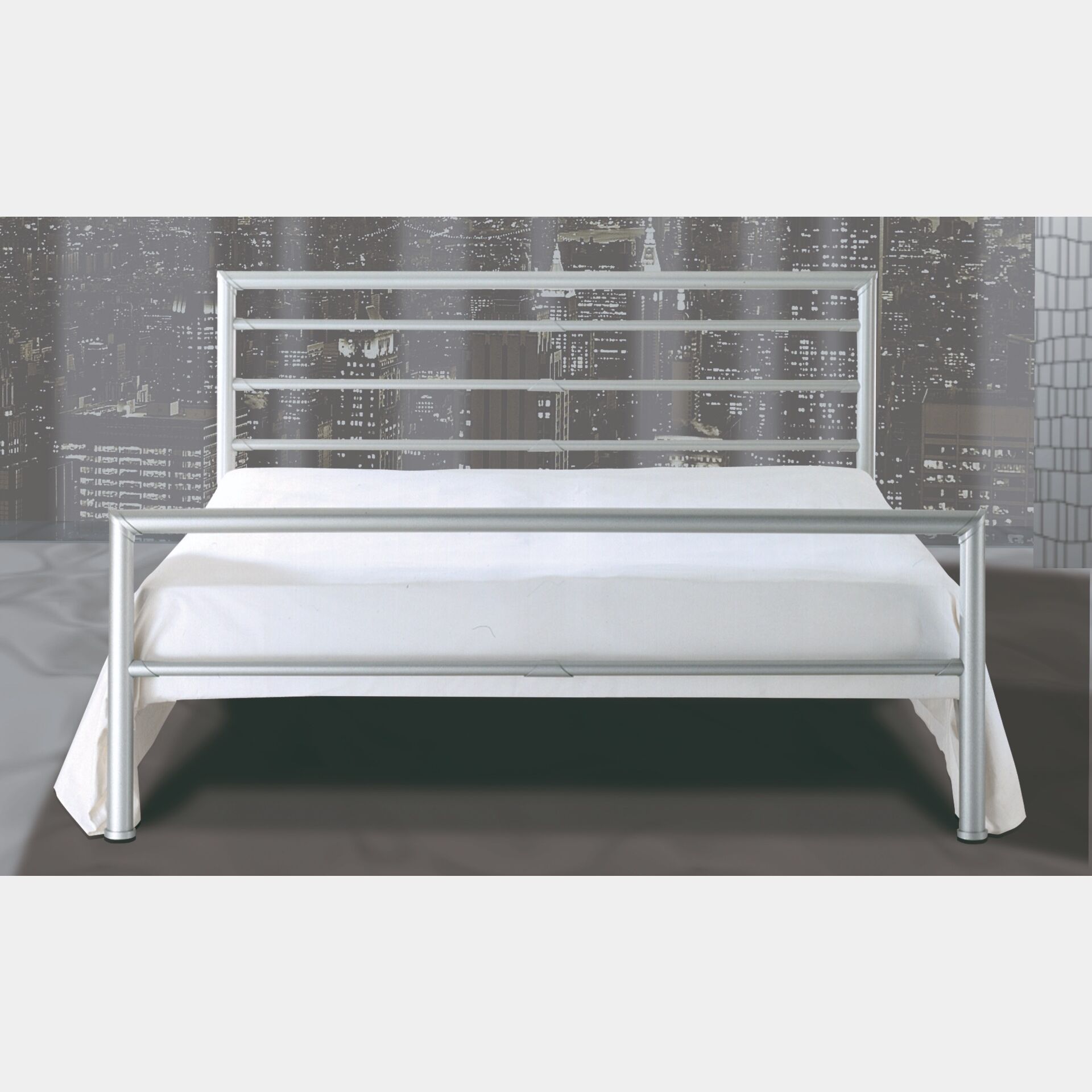 E' modificabile la finitura del letto in ferro battuto bianco che si può sostituire con: Nero satinato, Argento lucido, Turchese anticato oro, Nero opaco anticato oro, Nero opaco anticato argento, Blu goffrato, Argento satinato, Bianco perlato e Bianco anticato oro.