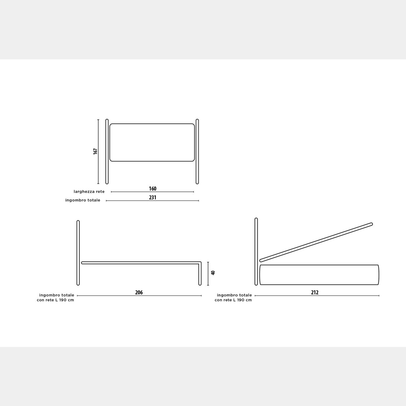 - Matrimoniale: L.231 H.167/40 P.206 cm