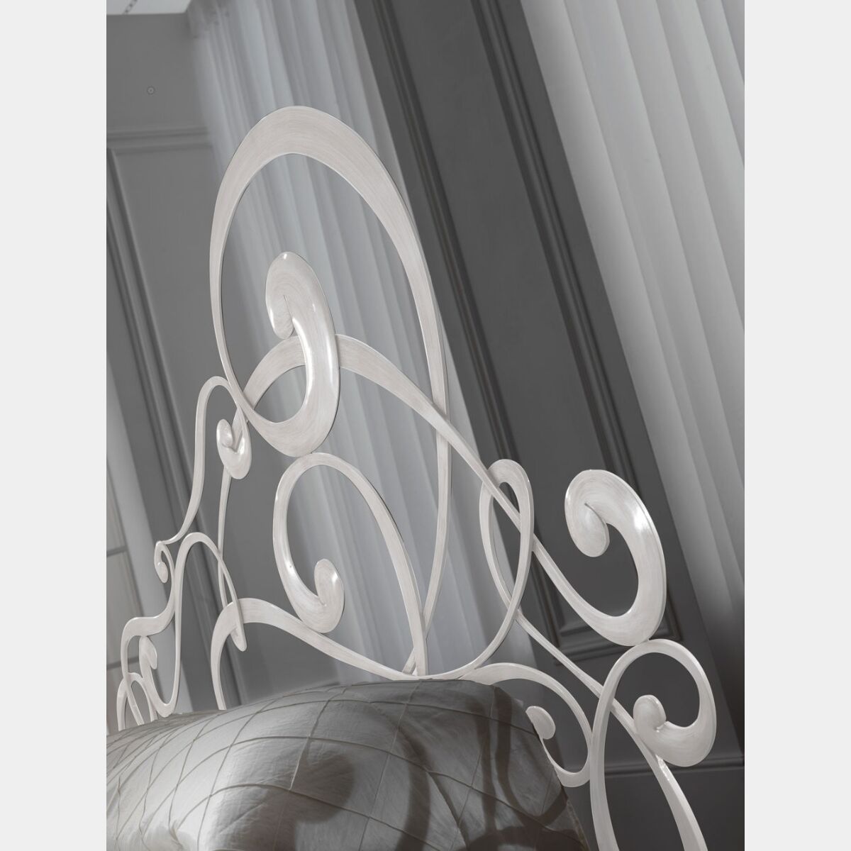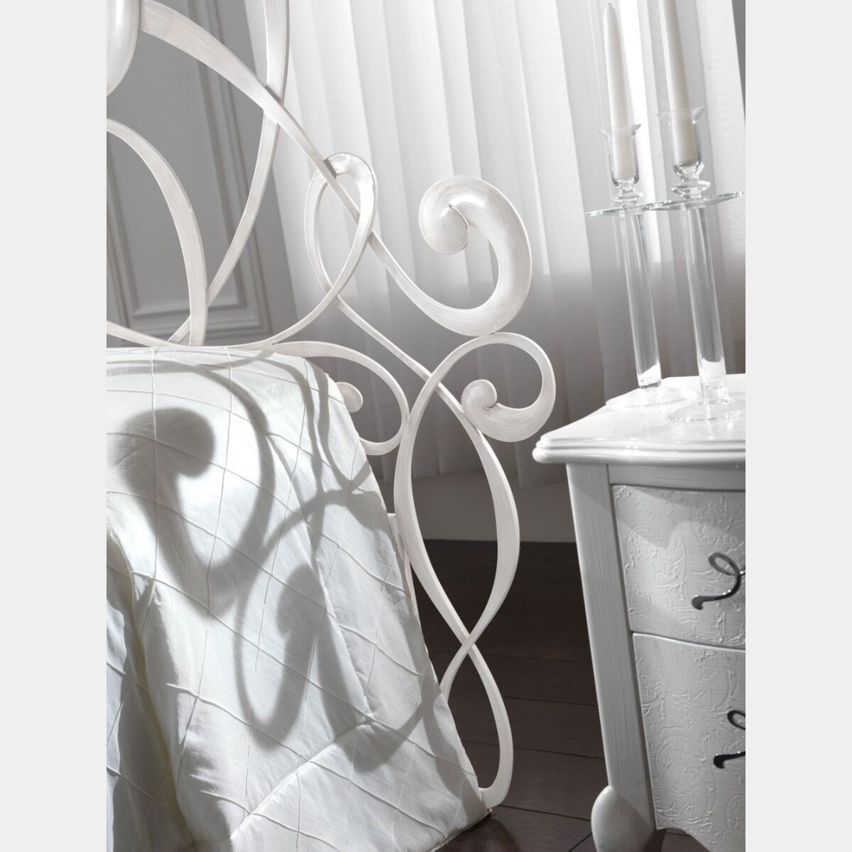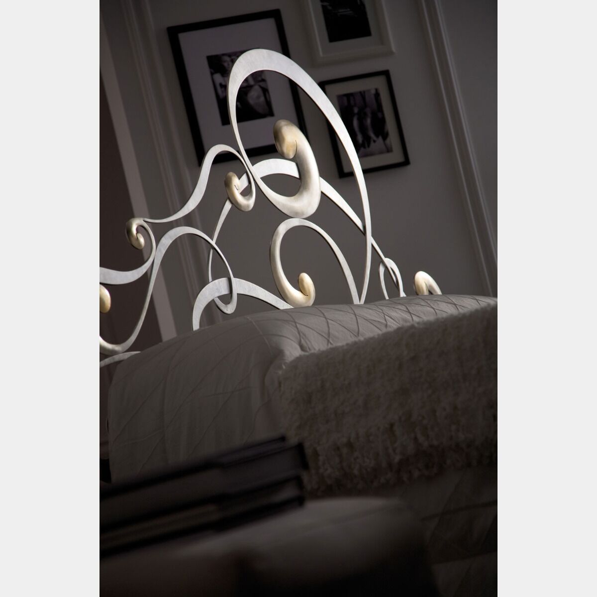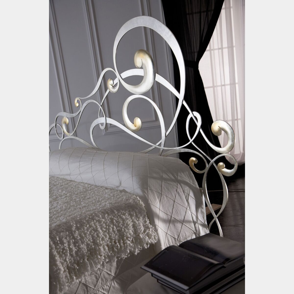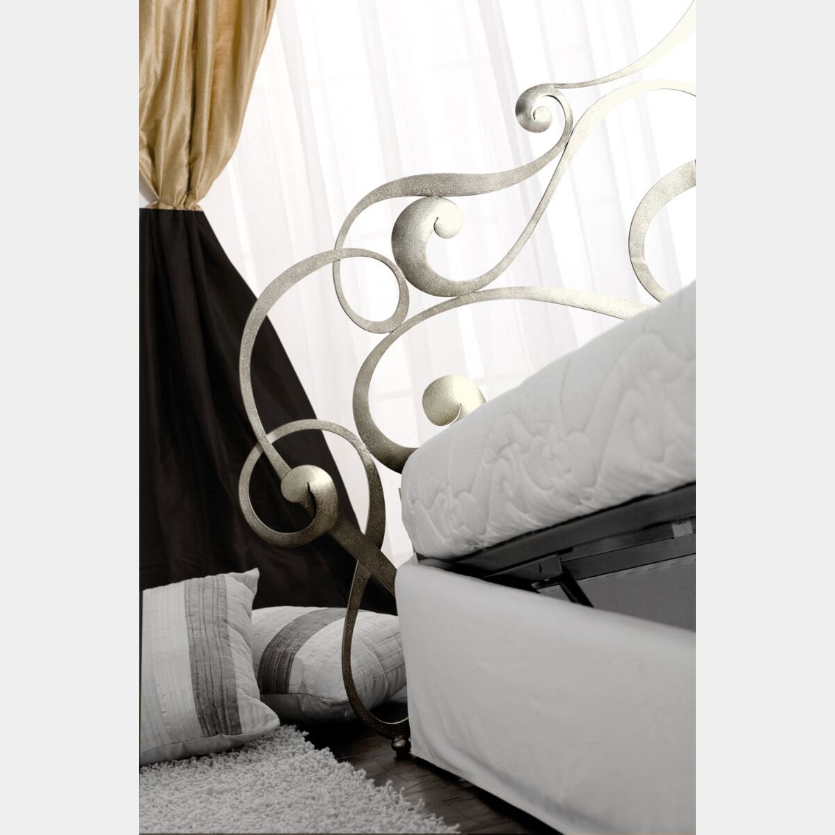 Un eclettismo creativo ed avvolgente per oggetti che definiscono le funzioni del nuovo abitare. Un letto in ferro matrimoniale con una testata del letto lunga più di 2 metri.