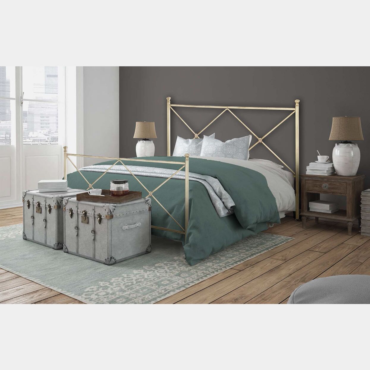 Letto in ferro Babbitt matrimoniale, finitura Avorio anticato oro