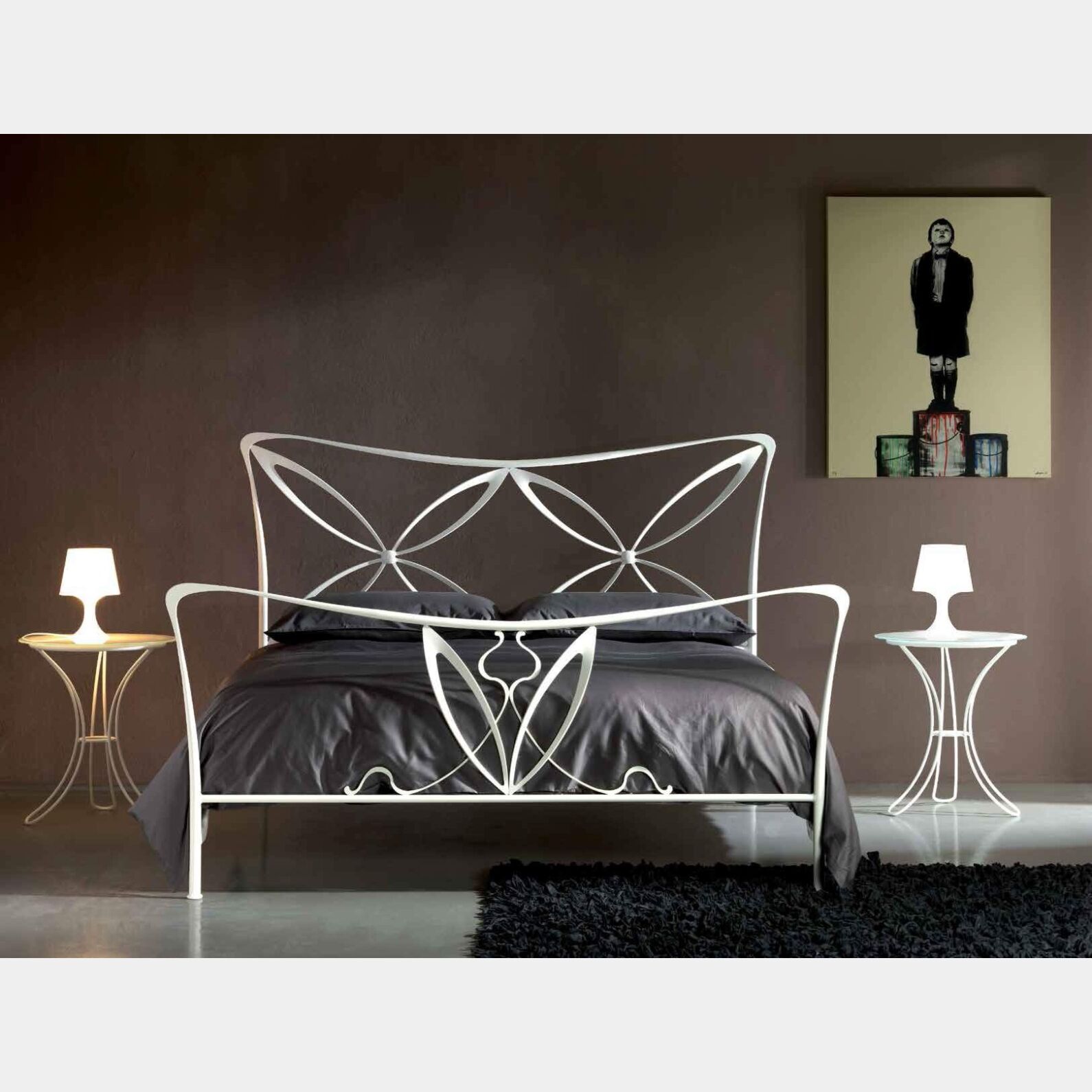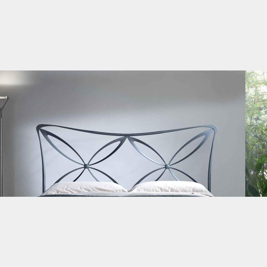 Letto in ferro battuto Smith, colore bianco confetto, made in Italy