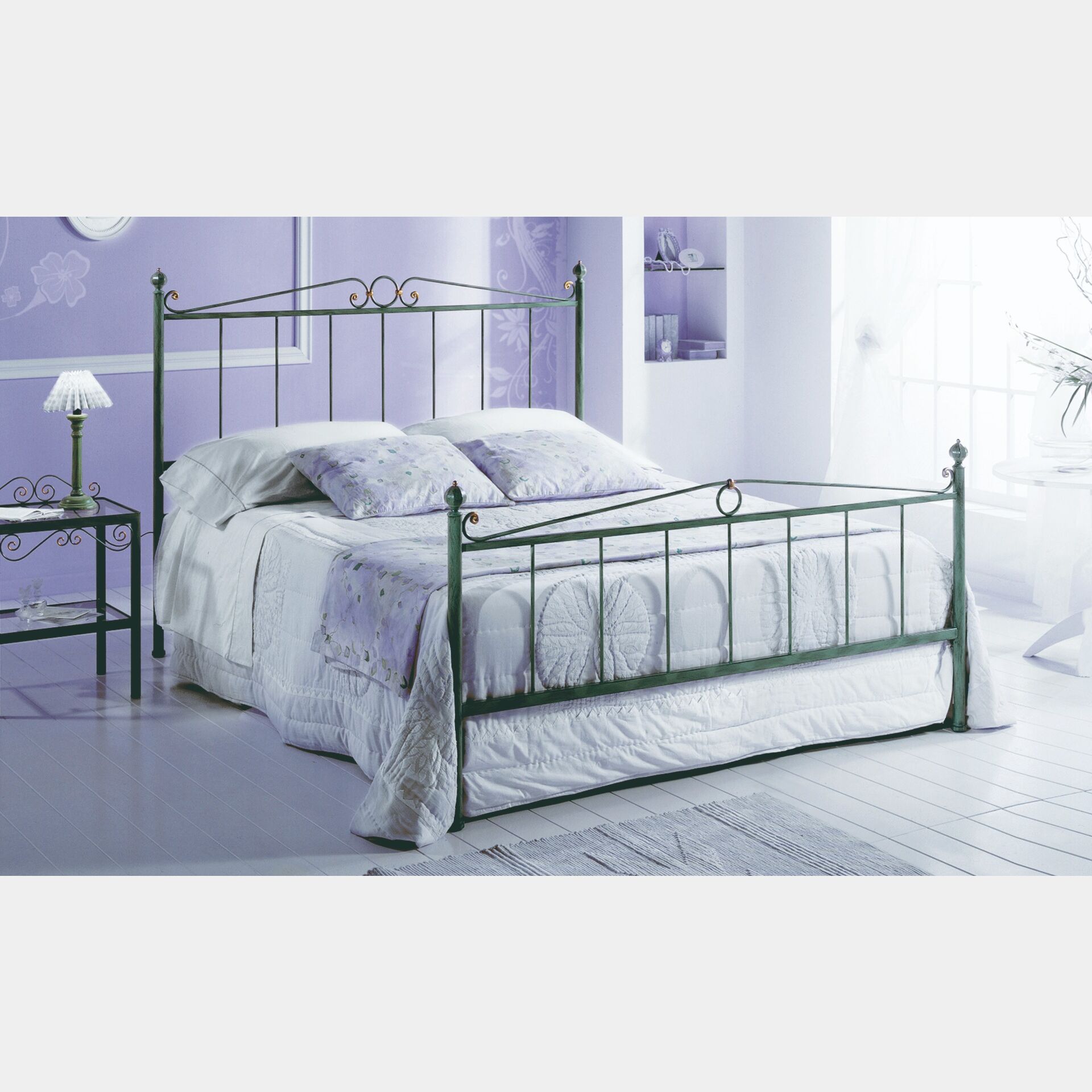 Letto in ferro Dolores, finitura Turchese anticato oro
