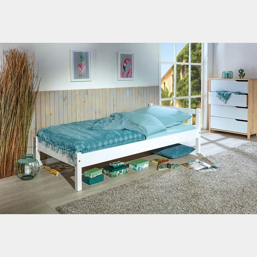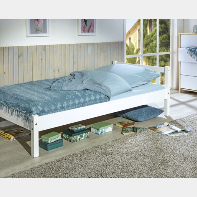 Letto in legno massello con testata dogata, bianco o legno naturale.