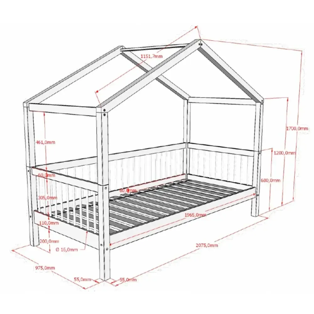 Avete la possibilità di togliere il tetto in qualsiasi momento, il letto superiore ha una dimensione di 90x200cm con rete inclusa e potete aggiungere un comodo cassettone se volete inseririre giochi, vestiti dei vostri bambini o inserire un letto estraibile per avere un posto in più con rete non inclusa.