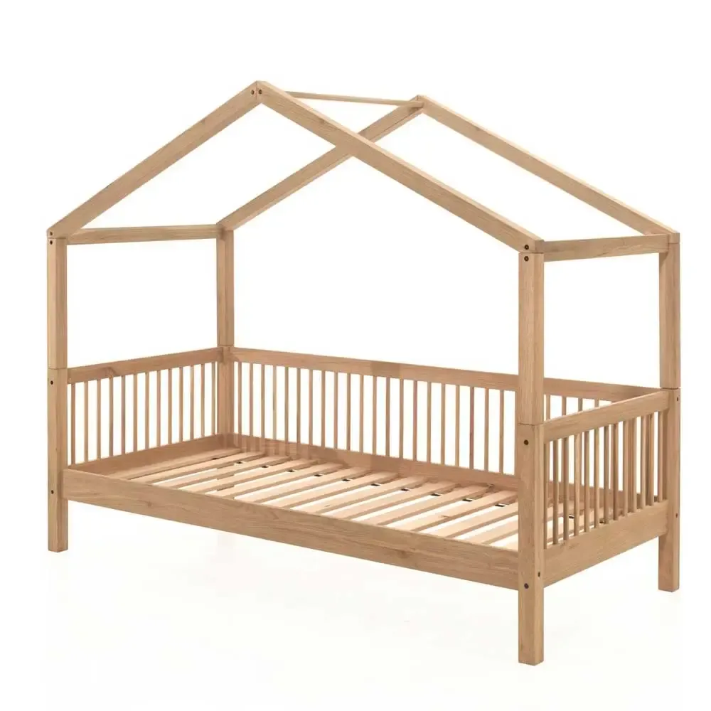 Letto a forma di casa in finitura Rovere in legno massello perfetto per i vostri bambini