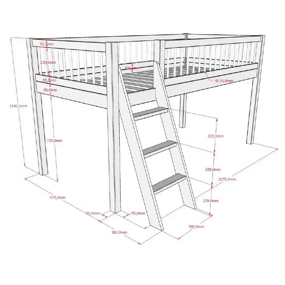 Letto a soppalco in finitura Rovere e in legno massello a basso costo