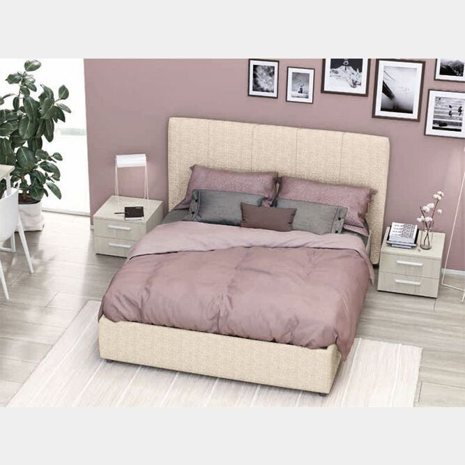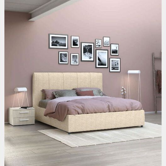 Il letto matrimoniale viene fornito con rete a doghe fissa, è possibile richiedere la versione con contenitore. Il letto matrimoniale in tessuto Desert presenta cuciture verticali in testata, caratteristica che consente una perfetta adattabilità a camere da letto moderne, che adottano uno stile semplice ma di impatto.