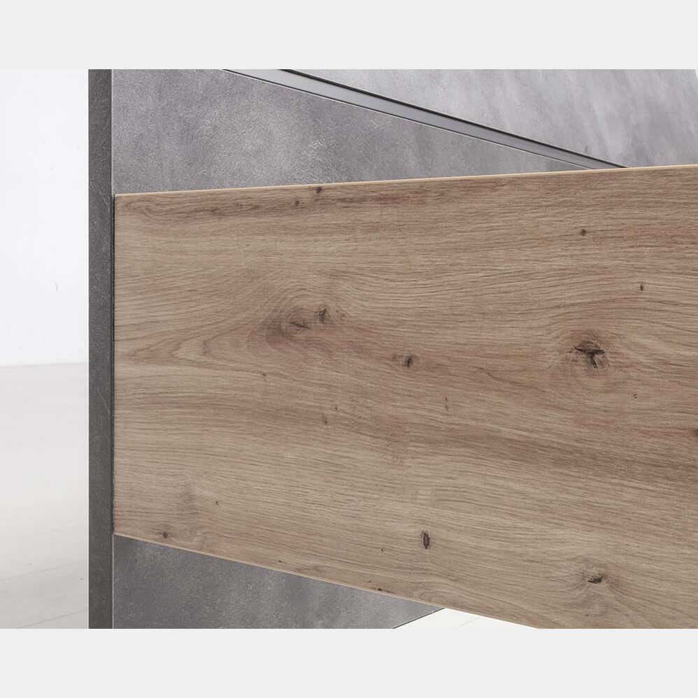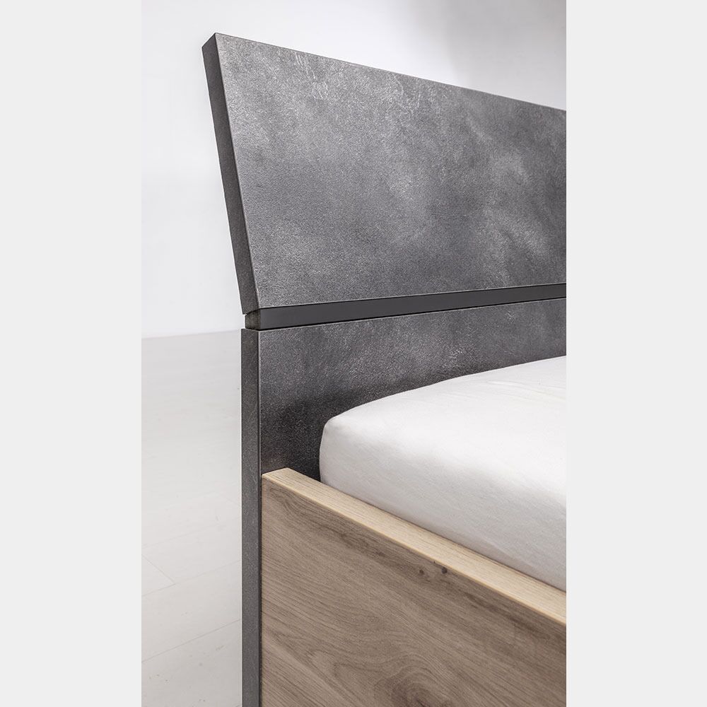 Letto Industry con testata ricurva in finitura Rovere e Grigio smoke