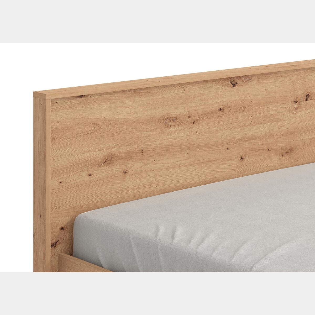 La calda tonalità rovere è caratterizzata da venature chiare e scure che donano movimento al letto, creando così un forte impatto che consente al letto di emergere nella camera da letto.