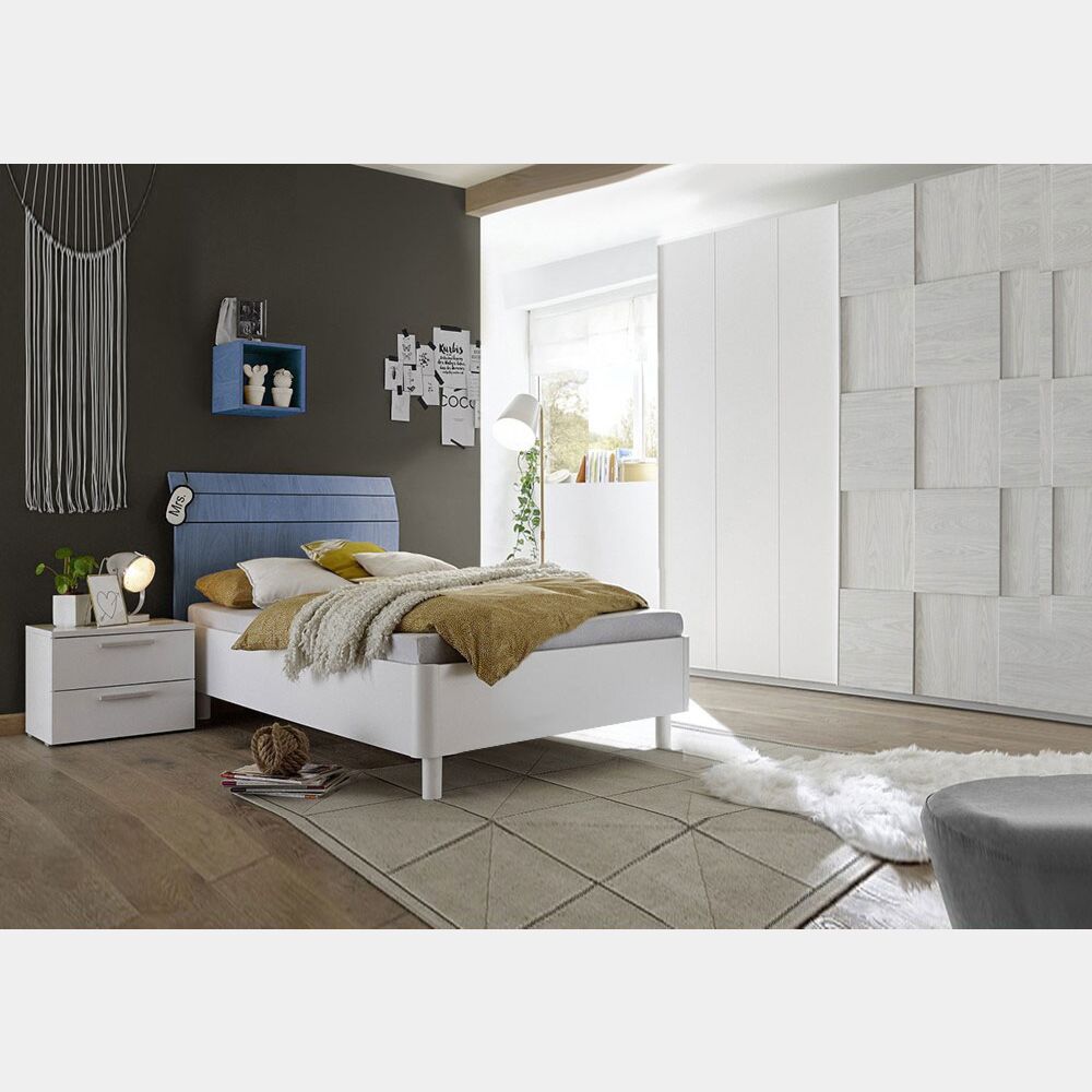 Letto Like una piazza e mezza con testiera in legno blu