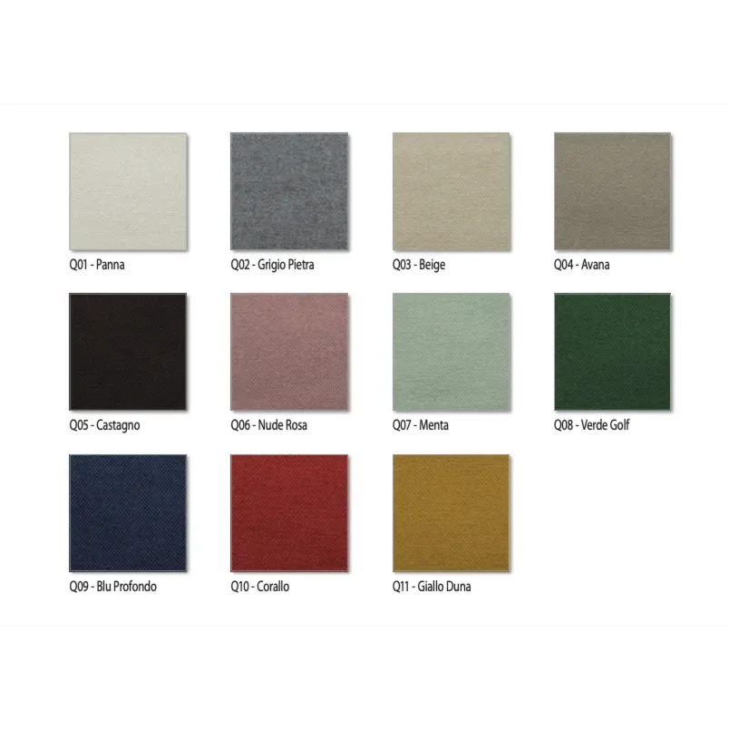 • Testata: in pannelli di agglomerato di legno, spessore 5,5 cm. Tessuto 100% cotone riciclato, lavaggio a mano.