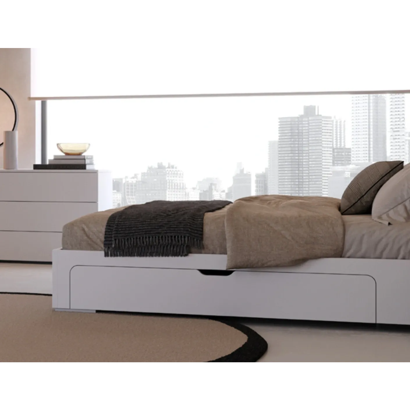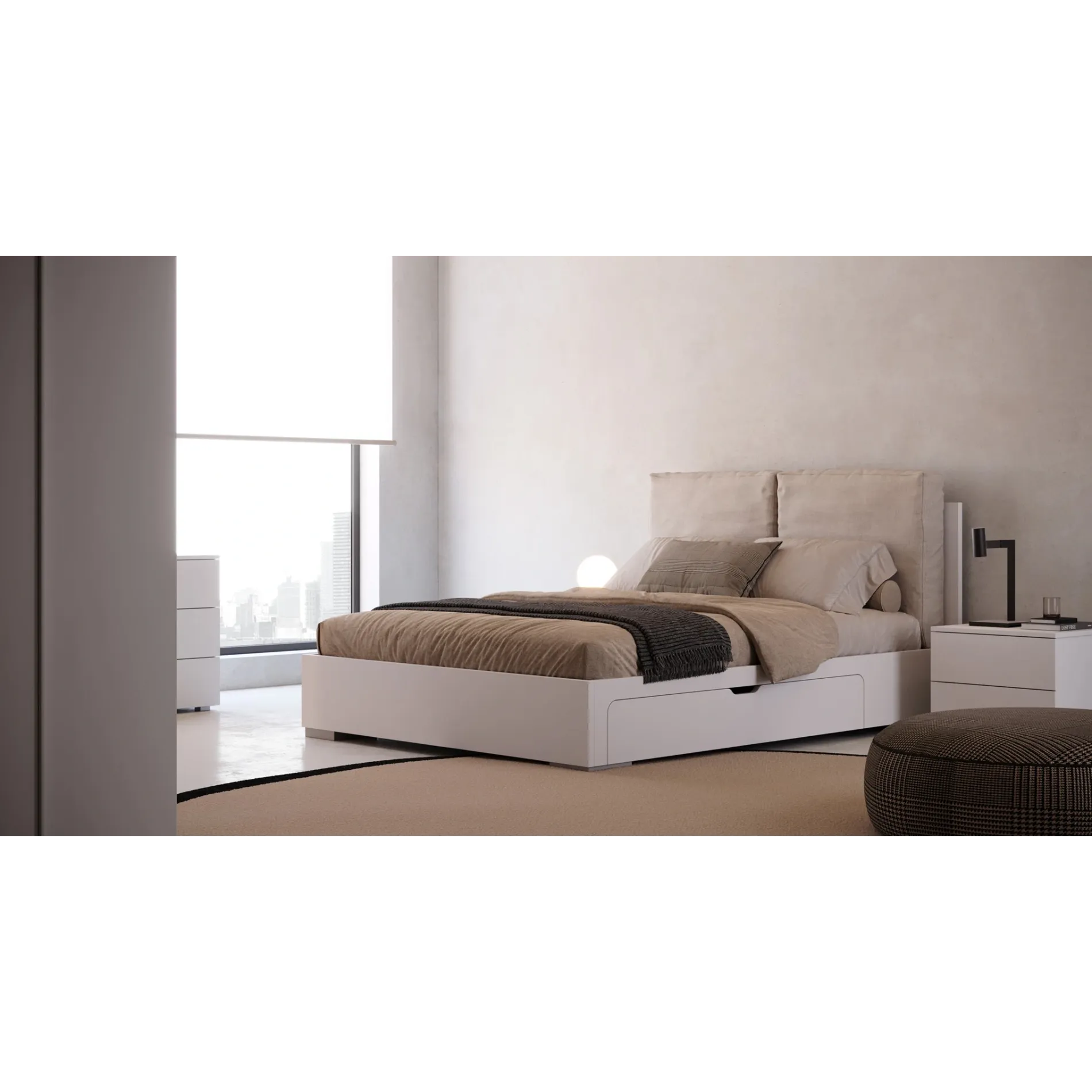 Letto matrimoniale 2 cassetti, laccato opaco Bianco, con cuscini