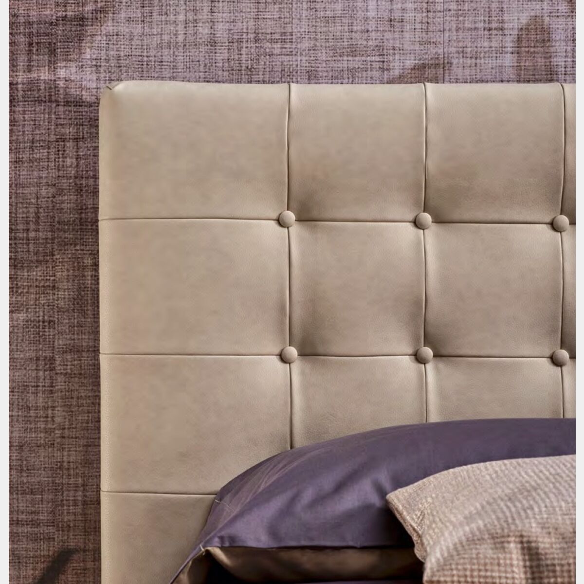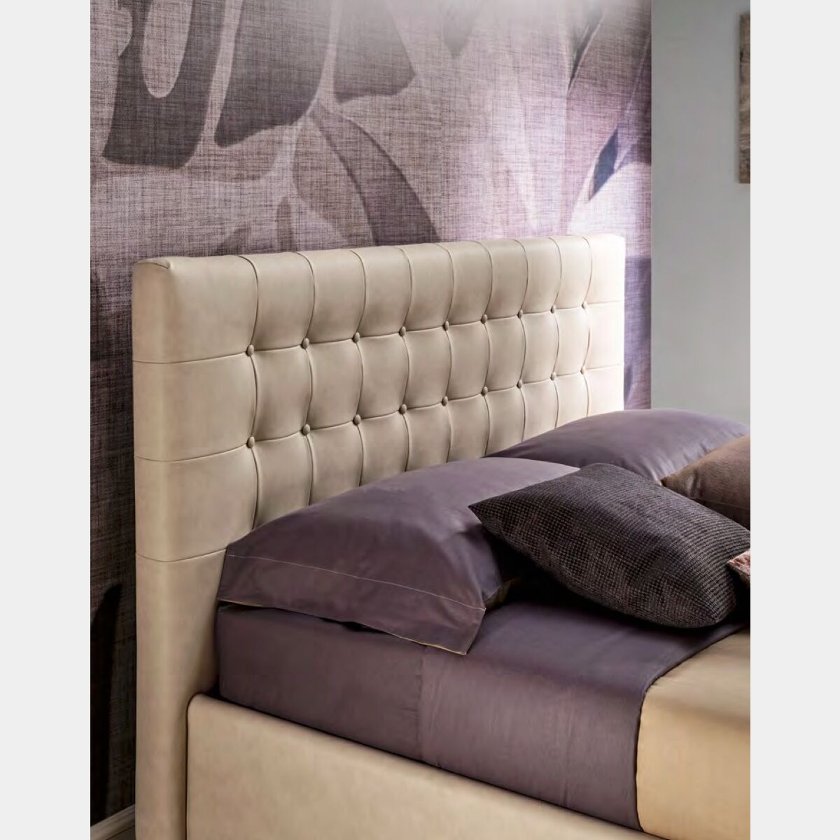 Letto matrimoniale Anima in ecopelle Crema con testata lavorata