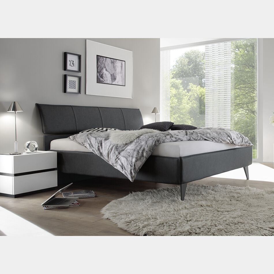 Letto matrimoniale antracite con contenitore con piedini in legno