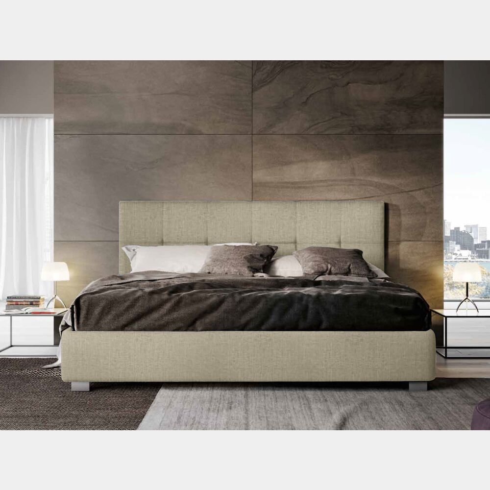 Letto matrimoniale beige imbottito, testata retrofinita