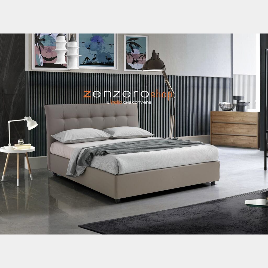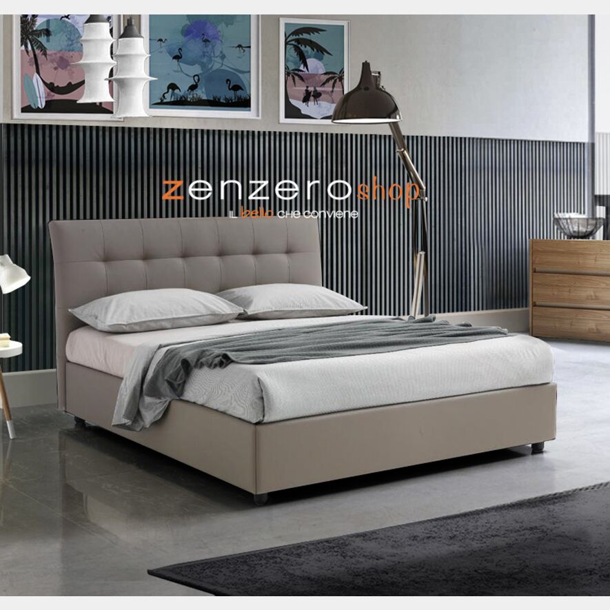 Letto matrimoniale con contenitore, ecopelle color Piuma Tortora scuro